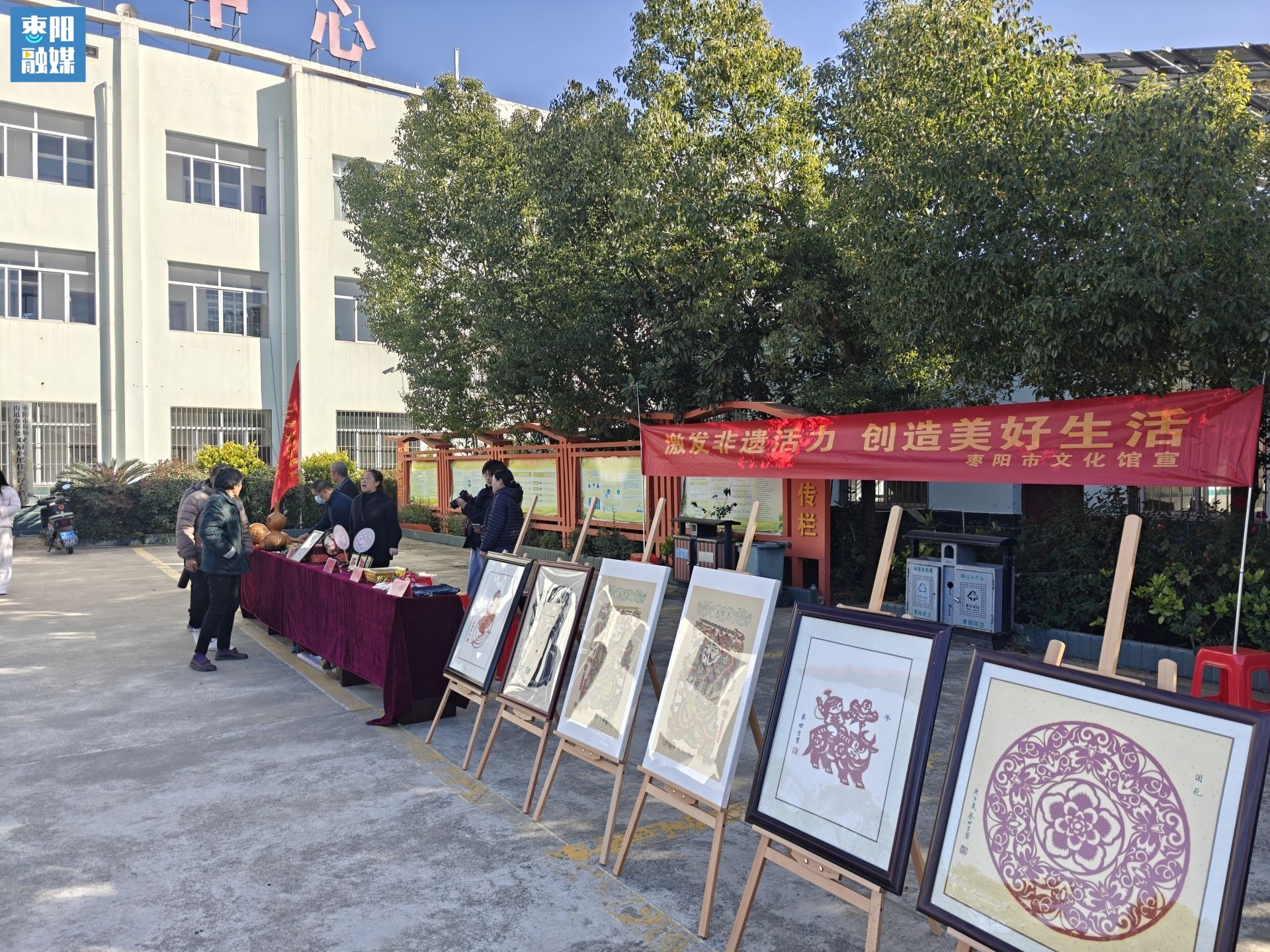 活动现场气氛热烈,欢声笑语不断。在非遗技艺展示区,枣阳剪纸、双面绣、葫芦雕刻等非遗项目吸引了大量村民驻足观赏。非遗传承人现场亮出绝活,剪刀翻飞间,一幅幅寓意吉祥的窗花栩栩如生;针线穿梭中,双面绣的精美图案逐渐呈现;刻刀游走于葫芦之上,一件件巧夺天工的作品令人叹为观止。村民们不仅近距离感受到了传统文化的独特魅力,还在传承人的指导下亲手体验,在互动中加深了对枣阳本地非遗文化的了解和热爱。