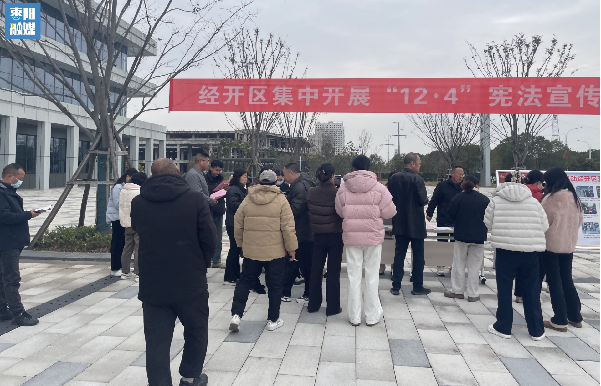 12月4日,枣阳经开区人大代表联合区派出所、司法所,在政务服务中心广场开展“弘扬宪法精神,建设法治文化”主题宣传活动。
