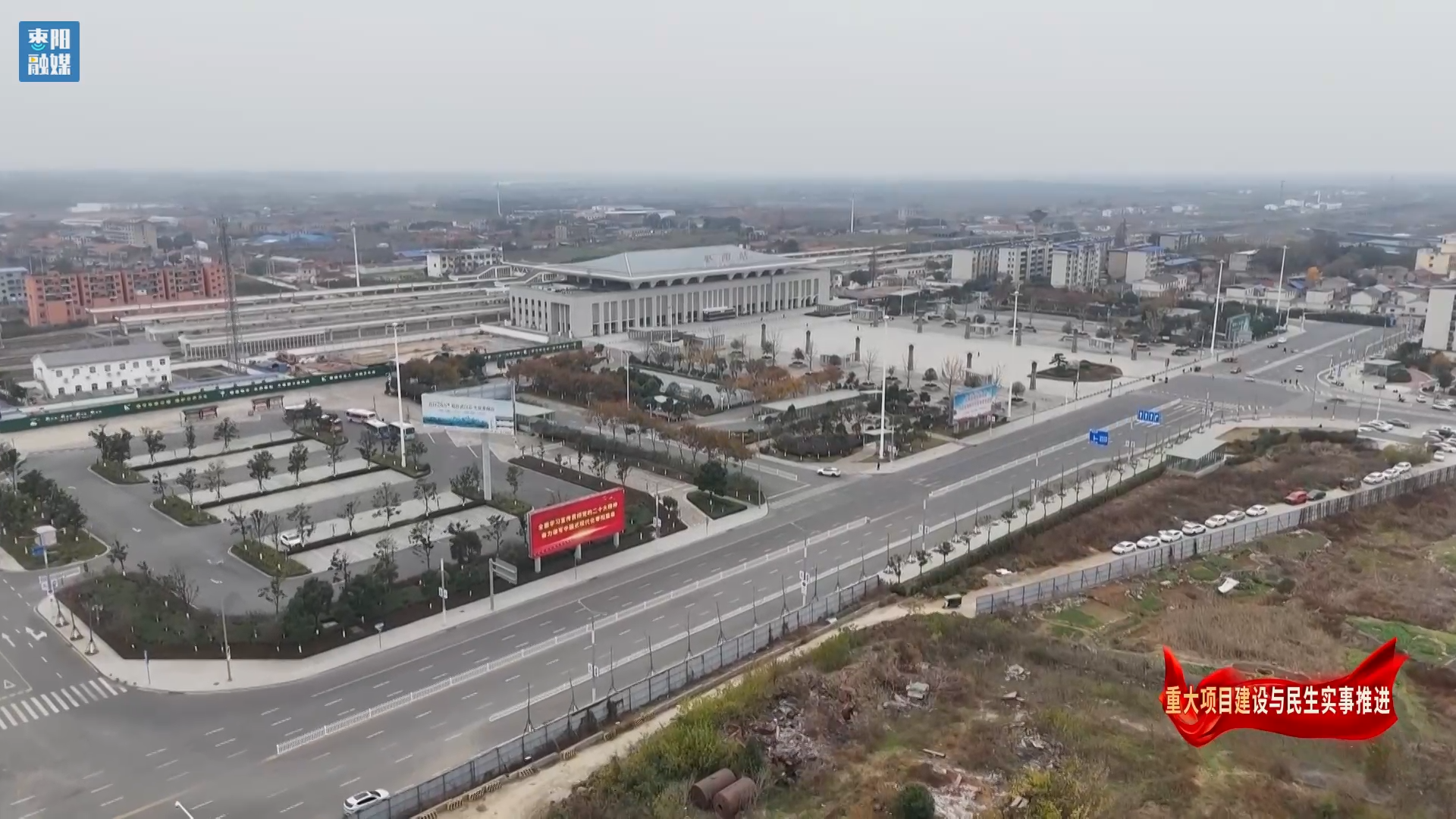 通车后的站前大道平坦宽阔,双向四车道畅通有序,两侧景观与高铁站建筑相得益彰,为枣阳城市门户形象注入了全新活力。