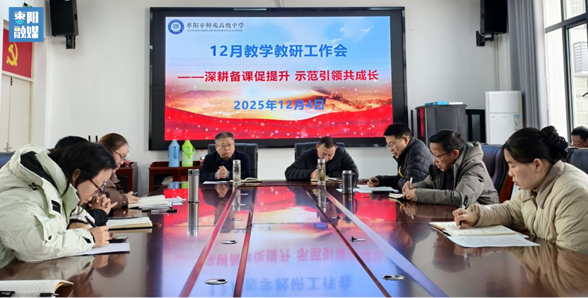12月4日,枣阳市师苑高级中学召开月度教学教研工作会,围绕“深耕备课促提升,示范引领共成长”主题,共商教学教研提质新策略和新路径。