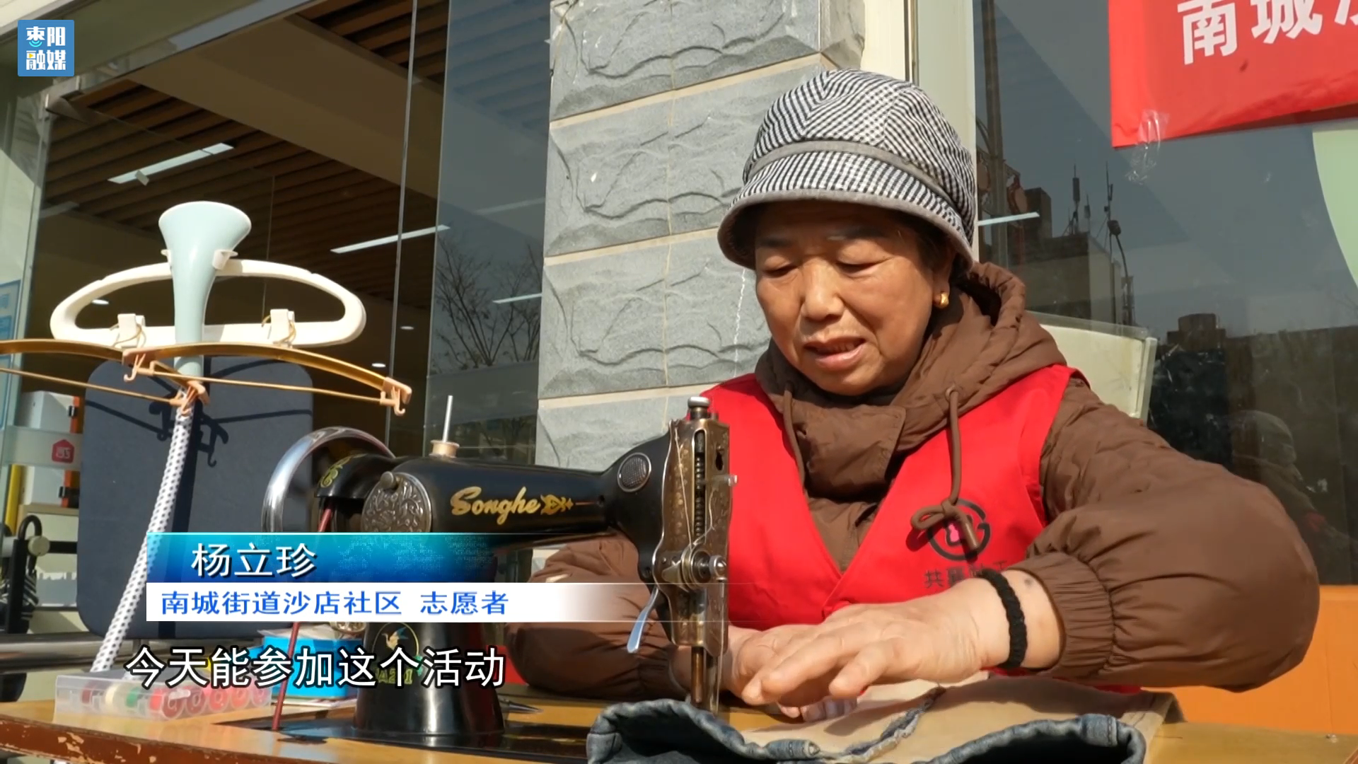 南城街道沙店社区居民罗兴凤:平时改个衣服改个裤边就要跑多远,今天在家门口就能免费改,社区这个活动真是办到我们居民心坎上了。
