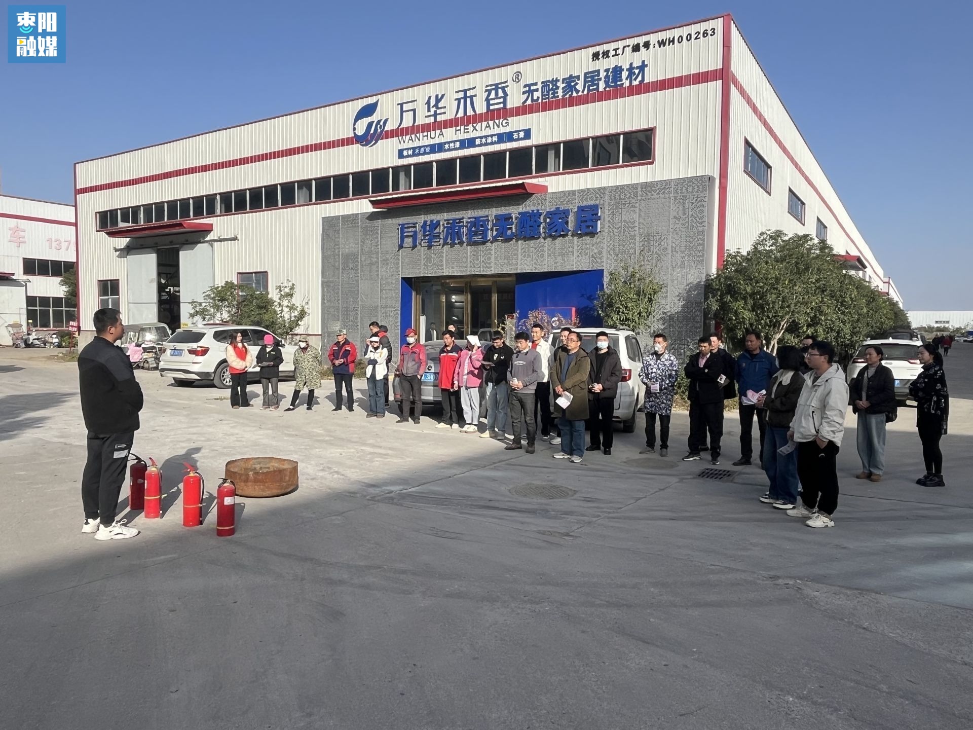 随后的演练环节,参训人员在消防指战员的指导下分组实操灭火器使用、初期火情扑救等技能,员工们依次完成“提、拔、握、压”灭火动作,模拟扑灭油盆明火,现场气氛紧张而有序。