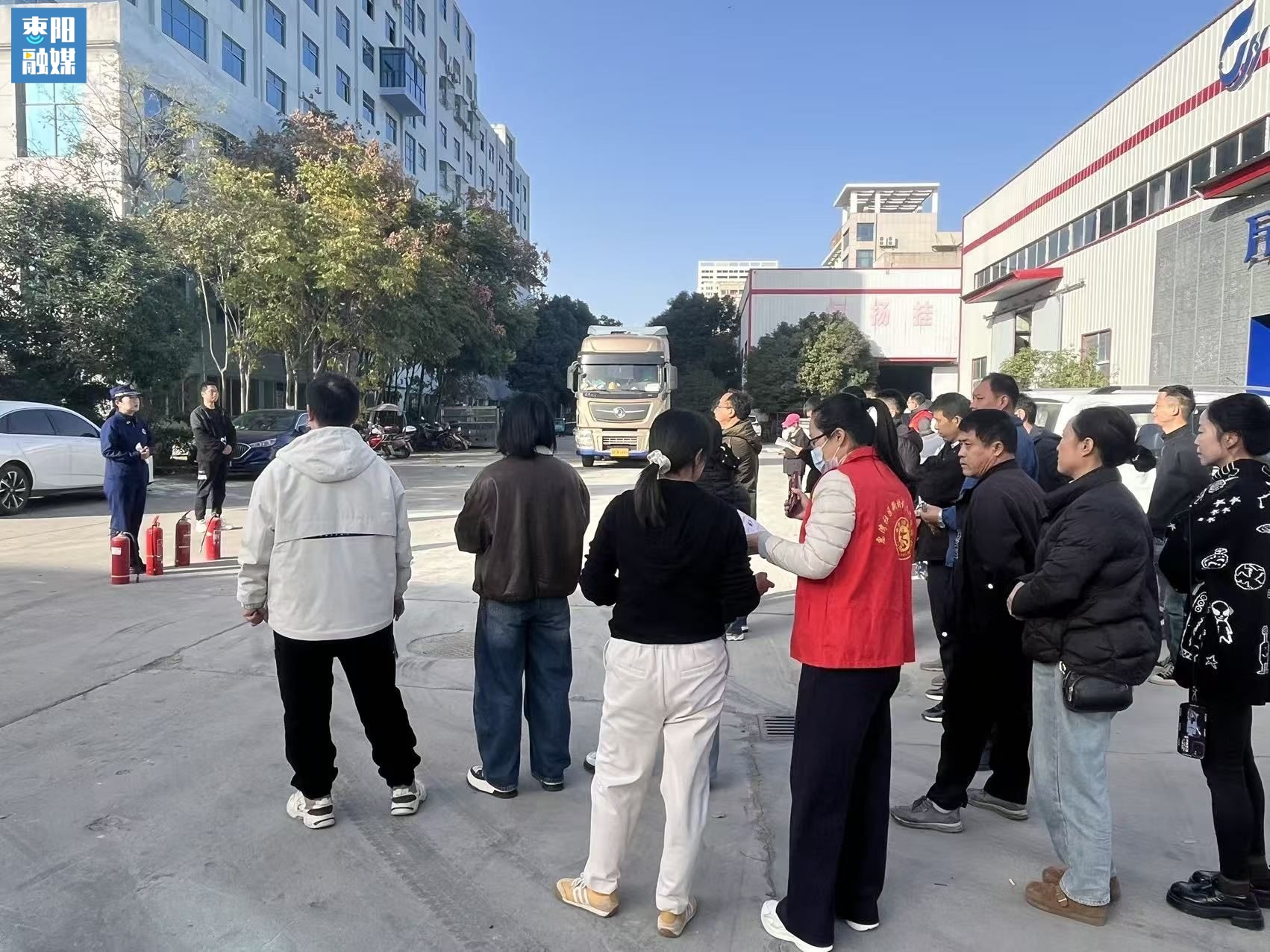 同时,社区志愿者与消防队员还走进厂区周边居民区,向商户和居民发放消防宣传手册,讲解家庭用火用电安全、逃生自救等常识,推动安全知识从厂区延伸至社区,以“小宣传”筑牢“大安全”。