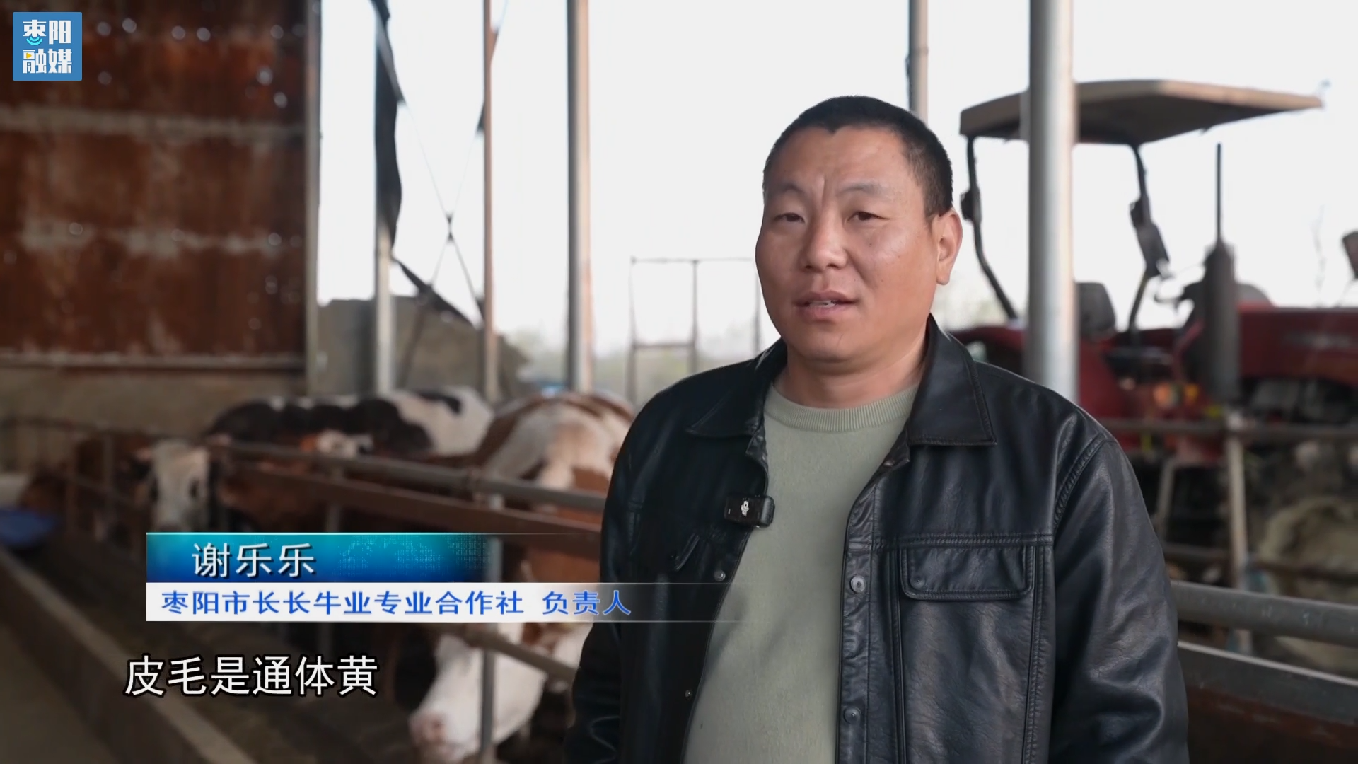 枣阳市长长牛业专业合作社负责人谢乐乐:枣北黄牛它的毛色、皮毛是通体黄,它的抗病能力、适应能力以及它的繁殖性能都要优于其他品种肉牛。