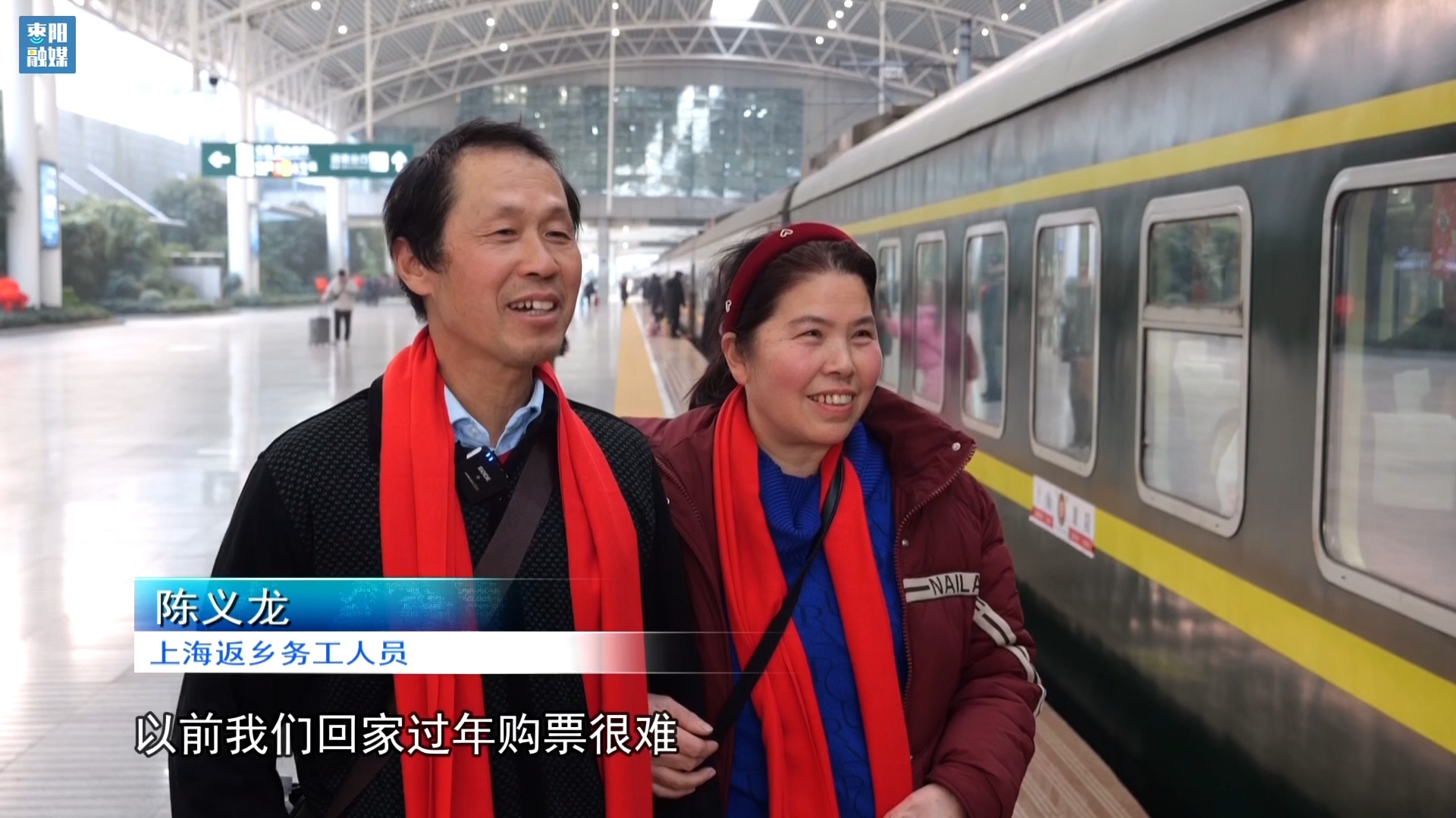 上海返乡务工人员陈义龙:以前我们回家过年购票很难,现在政府帮我们弄这个(回家),弄得确实好,非常感谢。