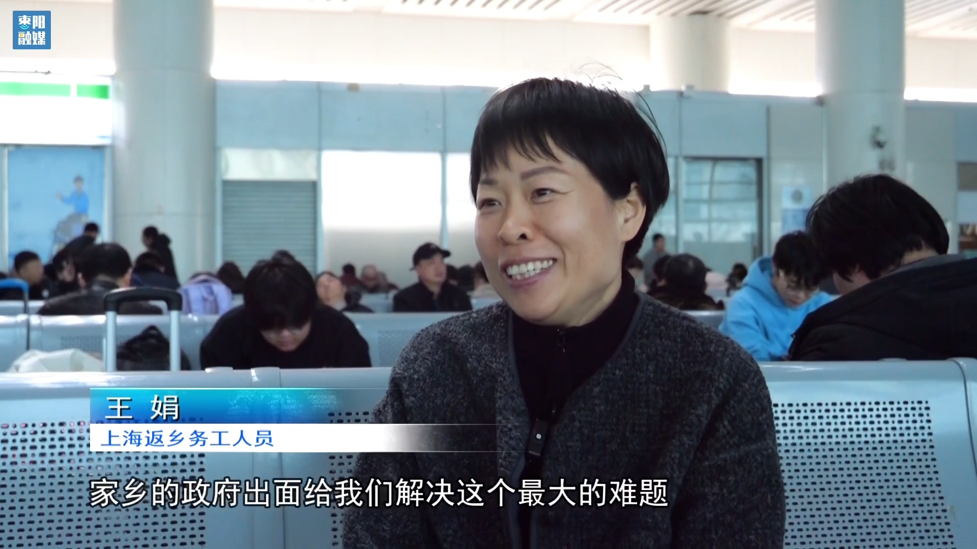 上海返乡务工人员王娟:春运的时候抢票一票难求,家乡的政府出面给我们解决这个最大的难题,我觉得真的很激动。