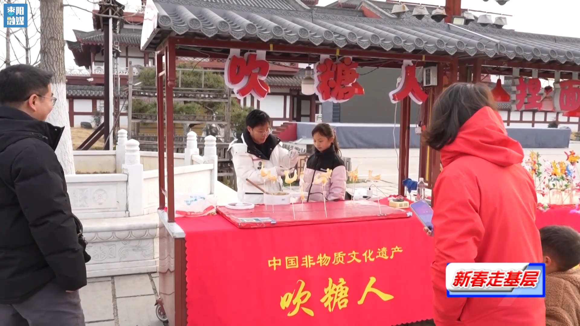 人群中,既有举家出游的本地市民,也有远道而来的外地游客。大家或驻足观赏民俗绝活,或身着汉服拍照打卡,在古色古香的建筑中寻觅年味。