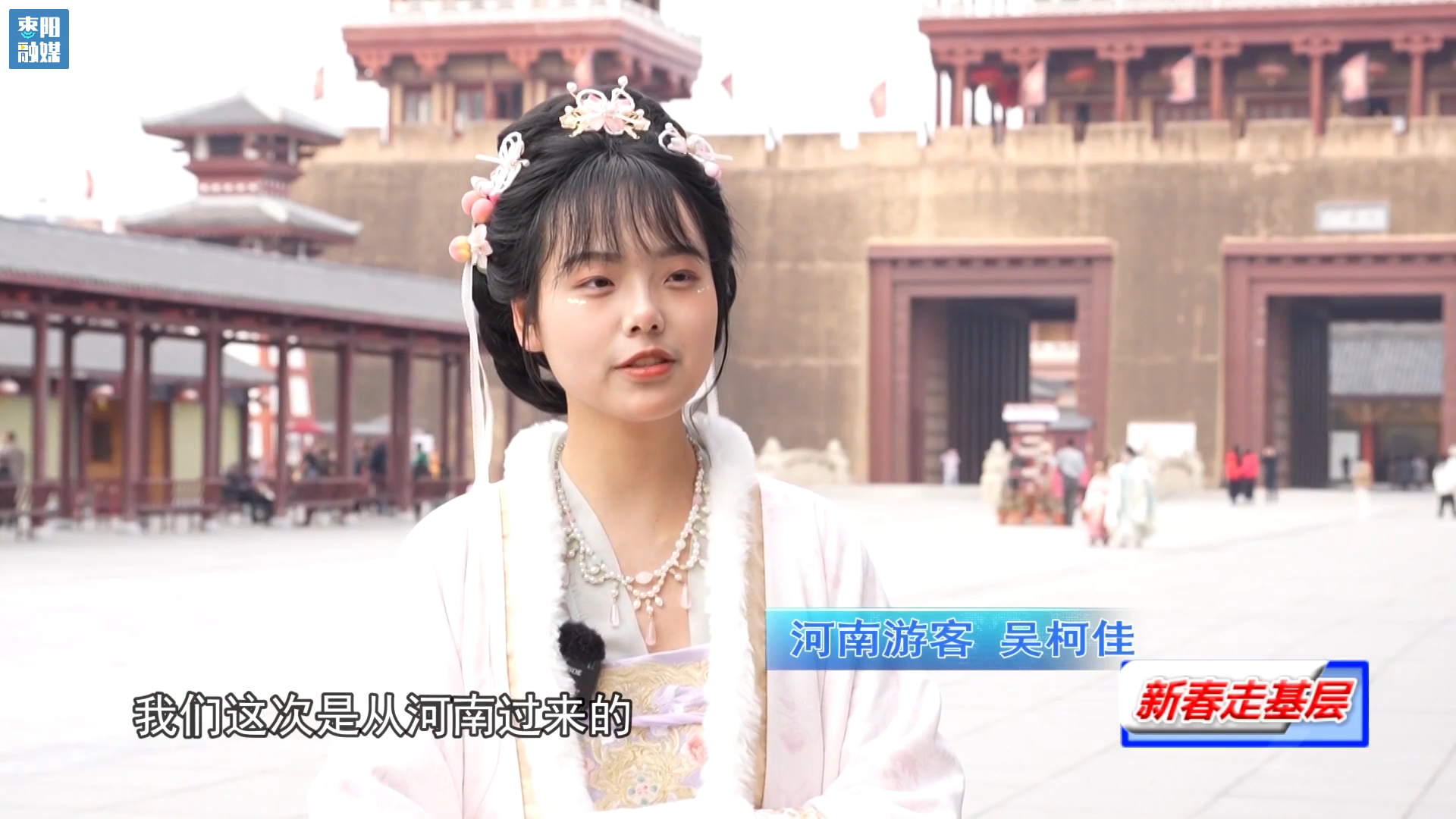 河南游客吴柯佳:我们这次是从河南过来的,在抖音上看到有关汉城的宣传,然后对这个景区很感兴趣,所以说过来体验一下。到这里之后呢,就感觉这里跟穿越了一样,而且这里还有很多表演看,新春氛围特别地浓厚,非常喜欢这里。