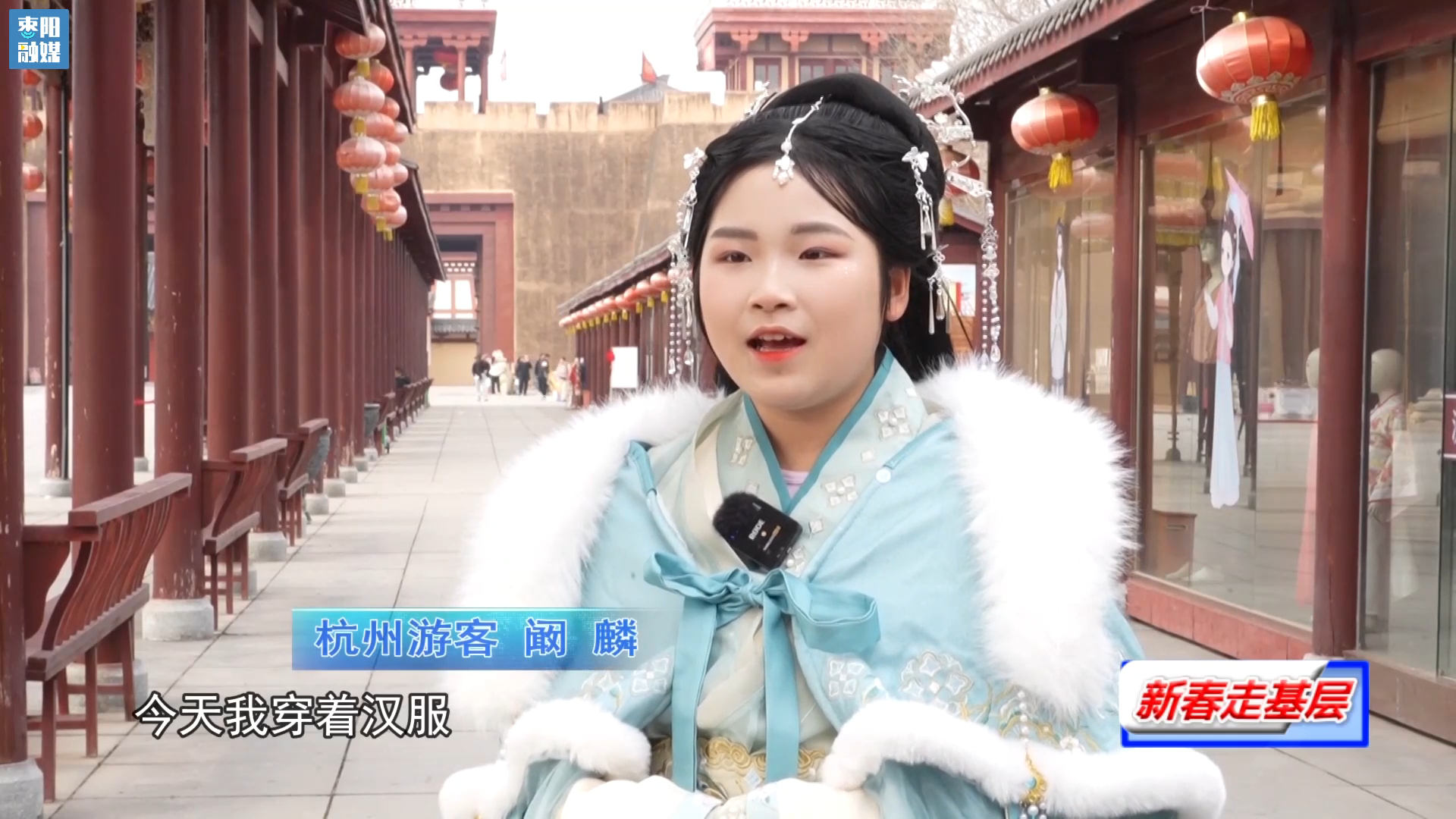杭州游客阚麟 :今天我穿着汉服走在这汉城景区里,里面沉浸式的体验,让我真真切切地感受到了历史书上描写的大汉风华,真的很美好,今天的旅途很愉快。