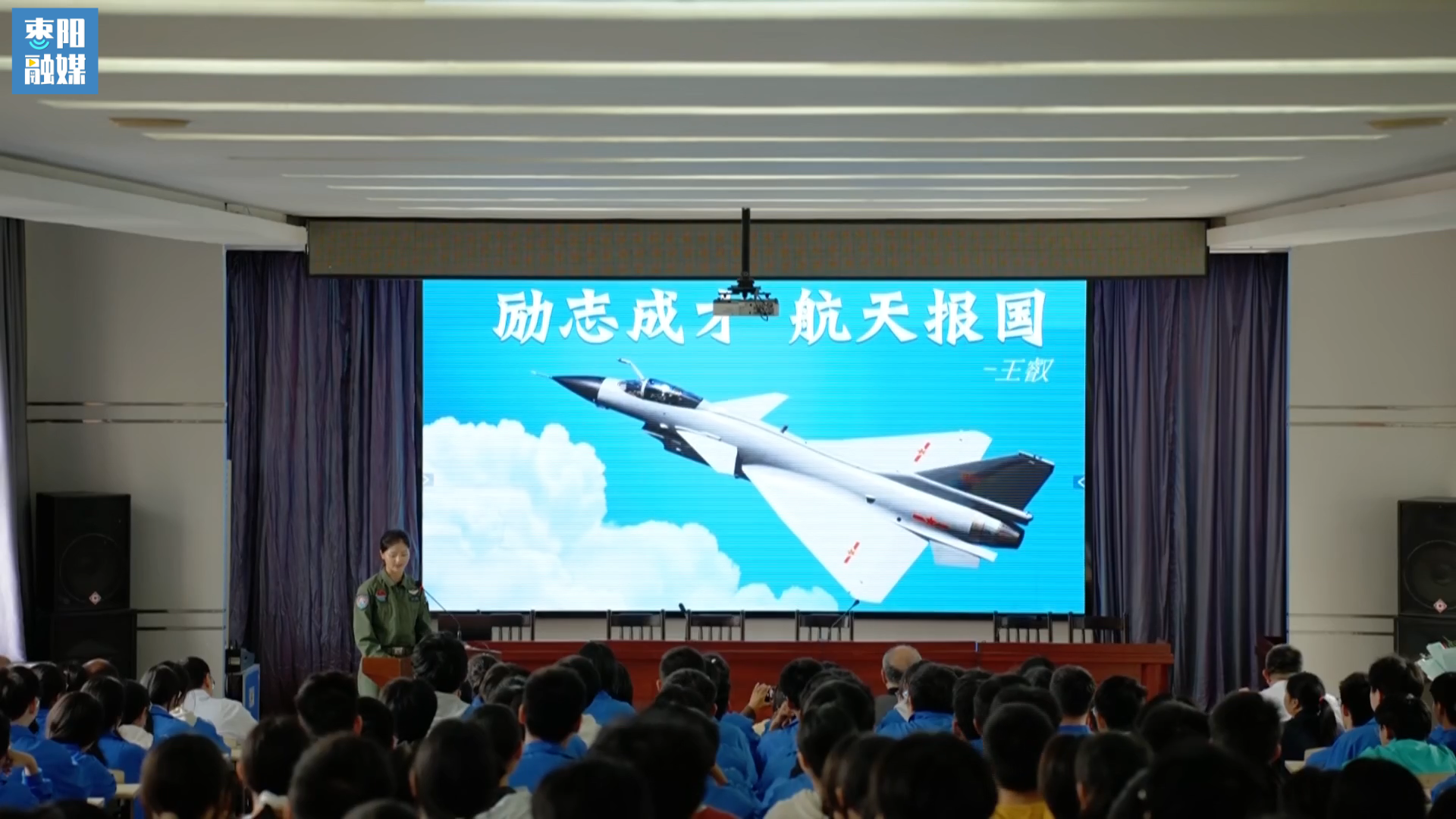 9月30日,襄阳市首位空军女飞行员王叡荣归母校枣阳一中,为全体师生分享了她逐梦蓝天、献身国防的心路历程。