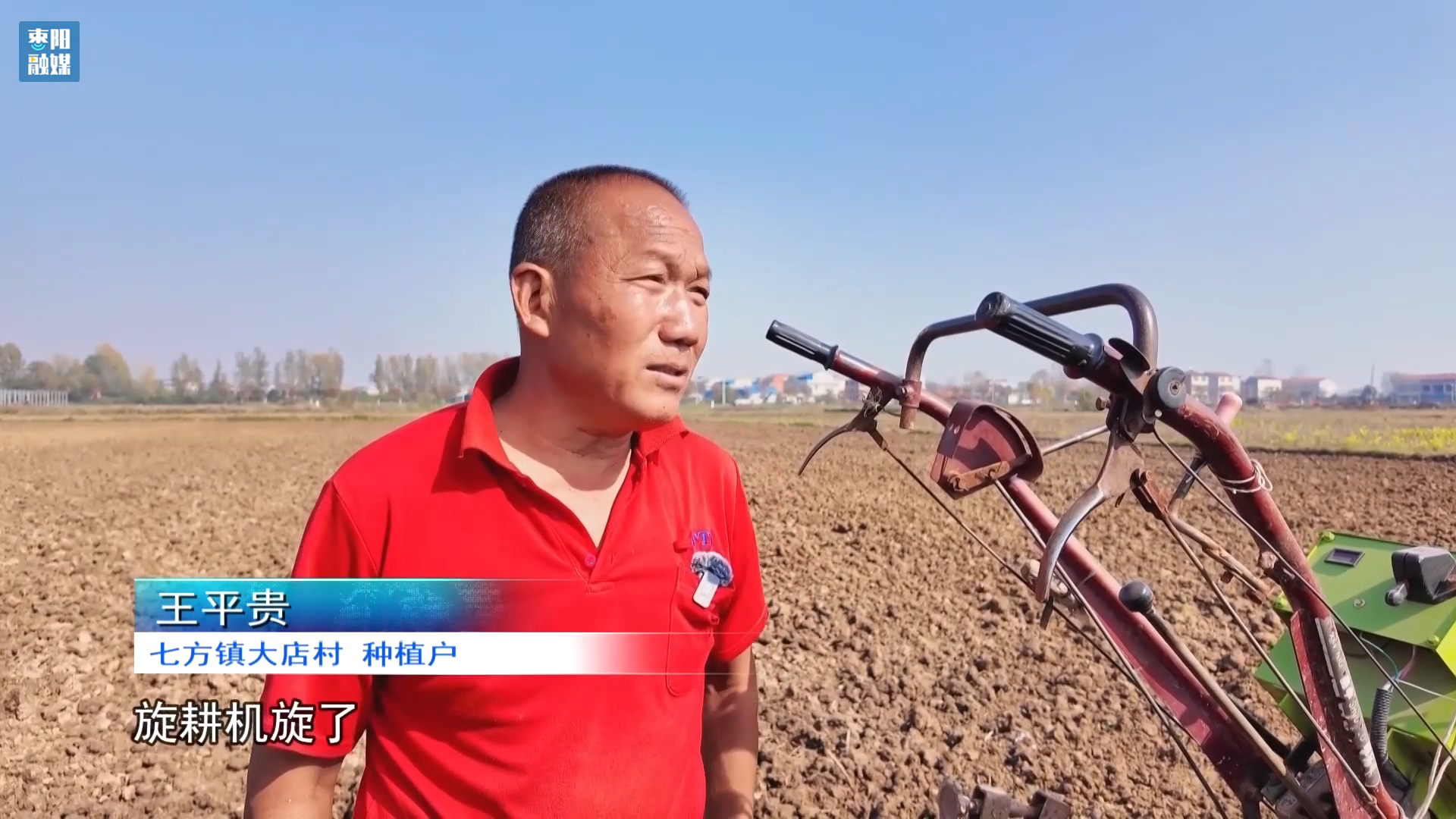 走进七方镇大店村,56岁的王平贵开着手扶拖拉机正在开沟耙地。