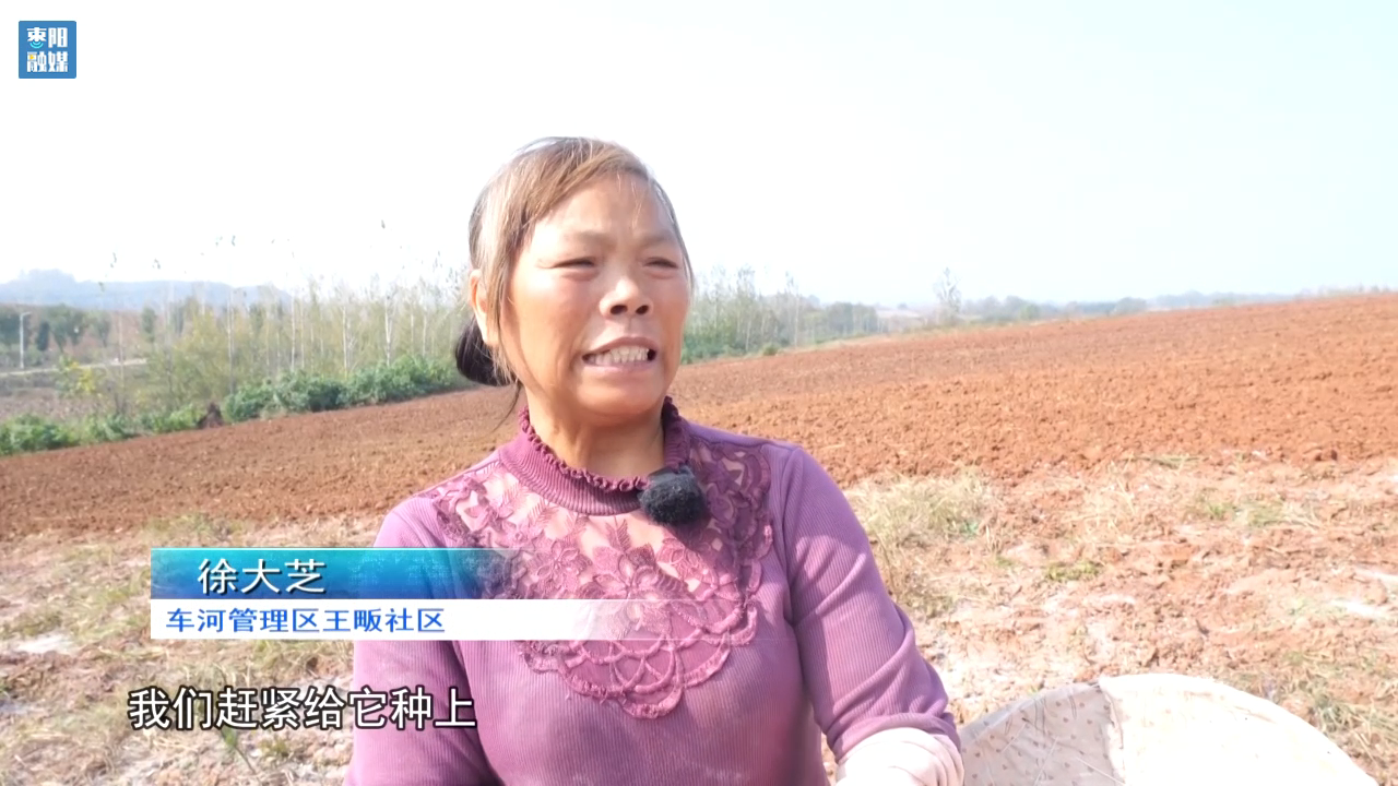 车河管理区王畈社区村民徐大芝:就这几天天气好,我们赶紧给它种上,先把肥料打下去,过两天等它吹一下了把种子一撒,就行了。