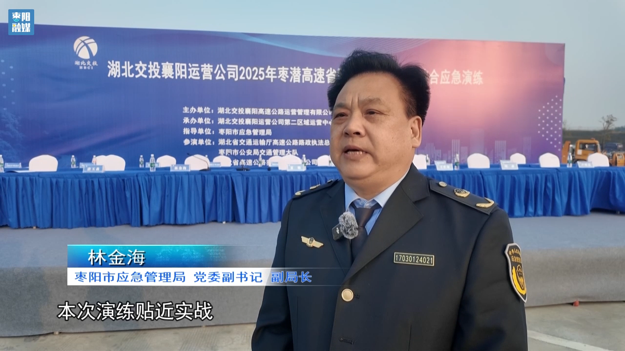 枣阳市应急管理局党委副书记、副局长林金海:本次演练贴近实战,也锻炼了我们的应急救援队伍、检验了应急救援装备,为今后跨区域、多部门协同处置突发事件积累了宝贵经验。