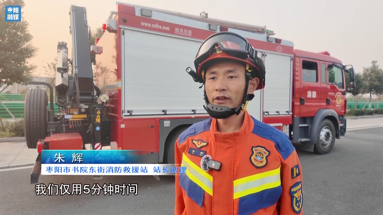 枣阳市书院东街消防救援站站长助理朱辉:此次演练,我们仅用5分钟时间成功地把被困人员救出。