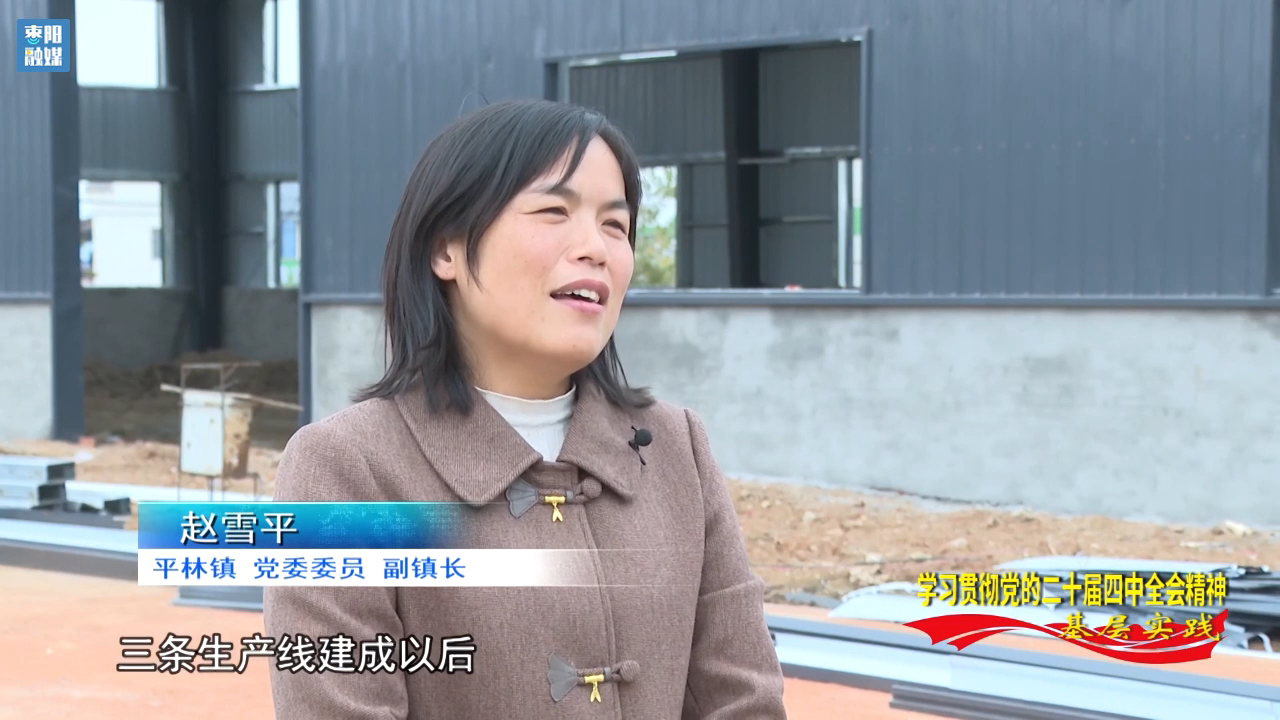 平林镇党委委员、副镇长赵雪平:三条生产线建成以后,能满足全镇7万亩桃子的包装需求,提供30个就业岗位,每年为村集体增收30万元。