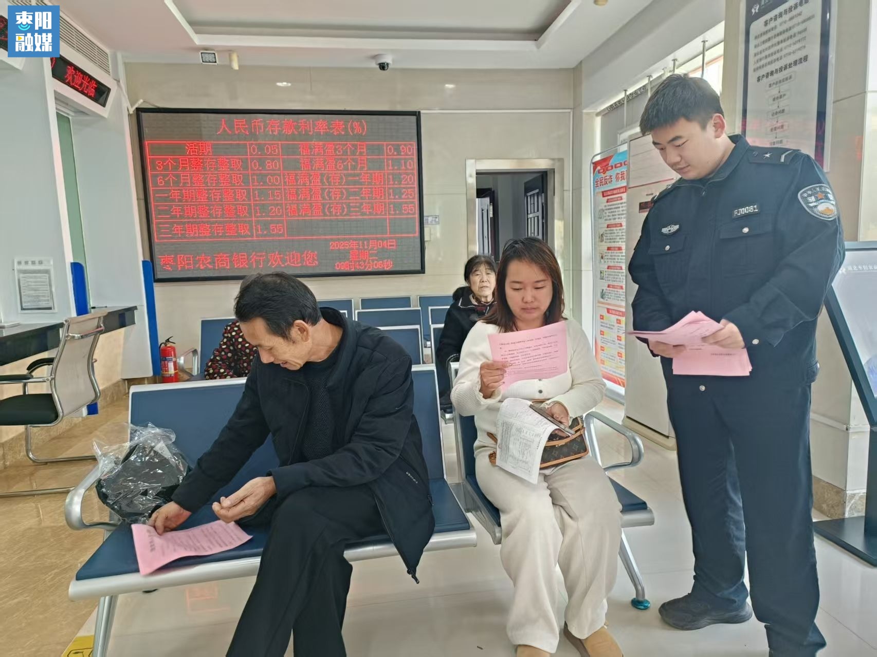 11月16日,枣阳市熊集镇政府联合熊集派出所走进辖区银行网点,开展“禁毒宣传进银行 ”主题宣传活动。
