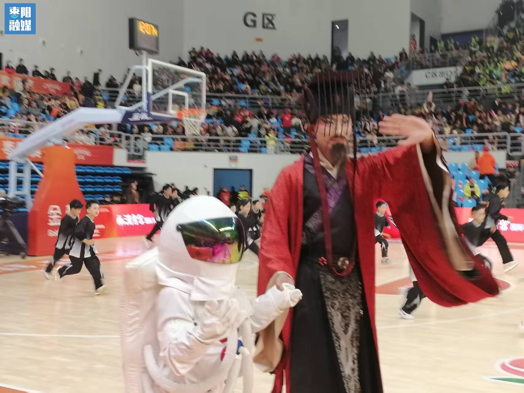 秉持“以文化赋能体育,以体育激活文旅”的核心理念,枣阳将汉文化、桃文化、非遗文化深度融入赛事全流程,让千年文脉与赛场激情交相辉映。“枣阳皇桃队”的命名彰显本土农产品牌魅力,襄阳曲剧《花木兰》《女驸马》等展演让传统艺术焕发时代活力,“帝王与航天英雄”主题巡游串联古今传承脉络,“帝乡非遗集市”让观众沉浸式触摸文化根脉。枣阳创新打造“体育+文化+演艺”多元展演模式,赛前鼓舞铿锵、民乐悠扬、武术刚劲,中场少儿篮球竞技、啦啦操热舞点燃全场,实现群众参与从“找节目”到“挑节目”、观赛体验从“看比赛”到“赏演出”的双重升级,让篮球馆变身沉浸式文化体育秀场。