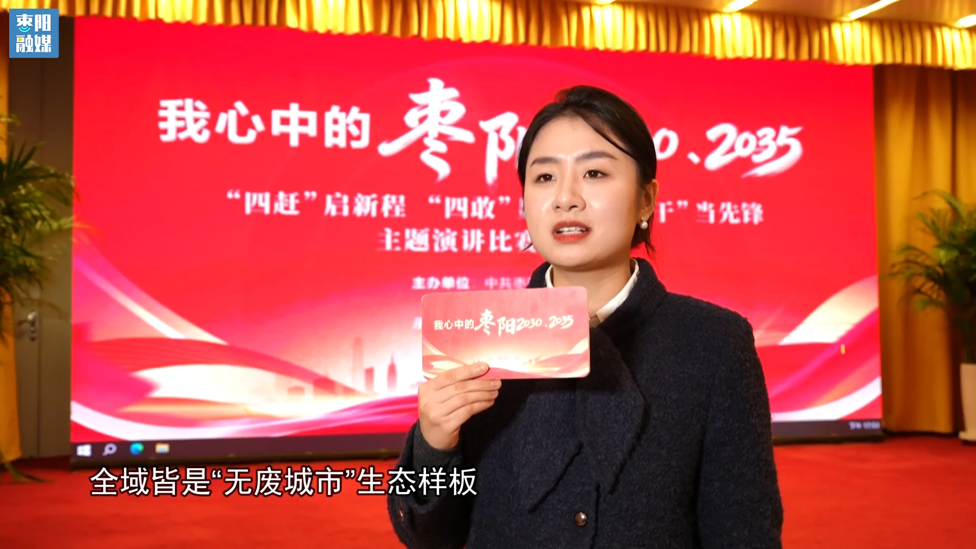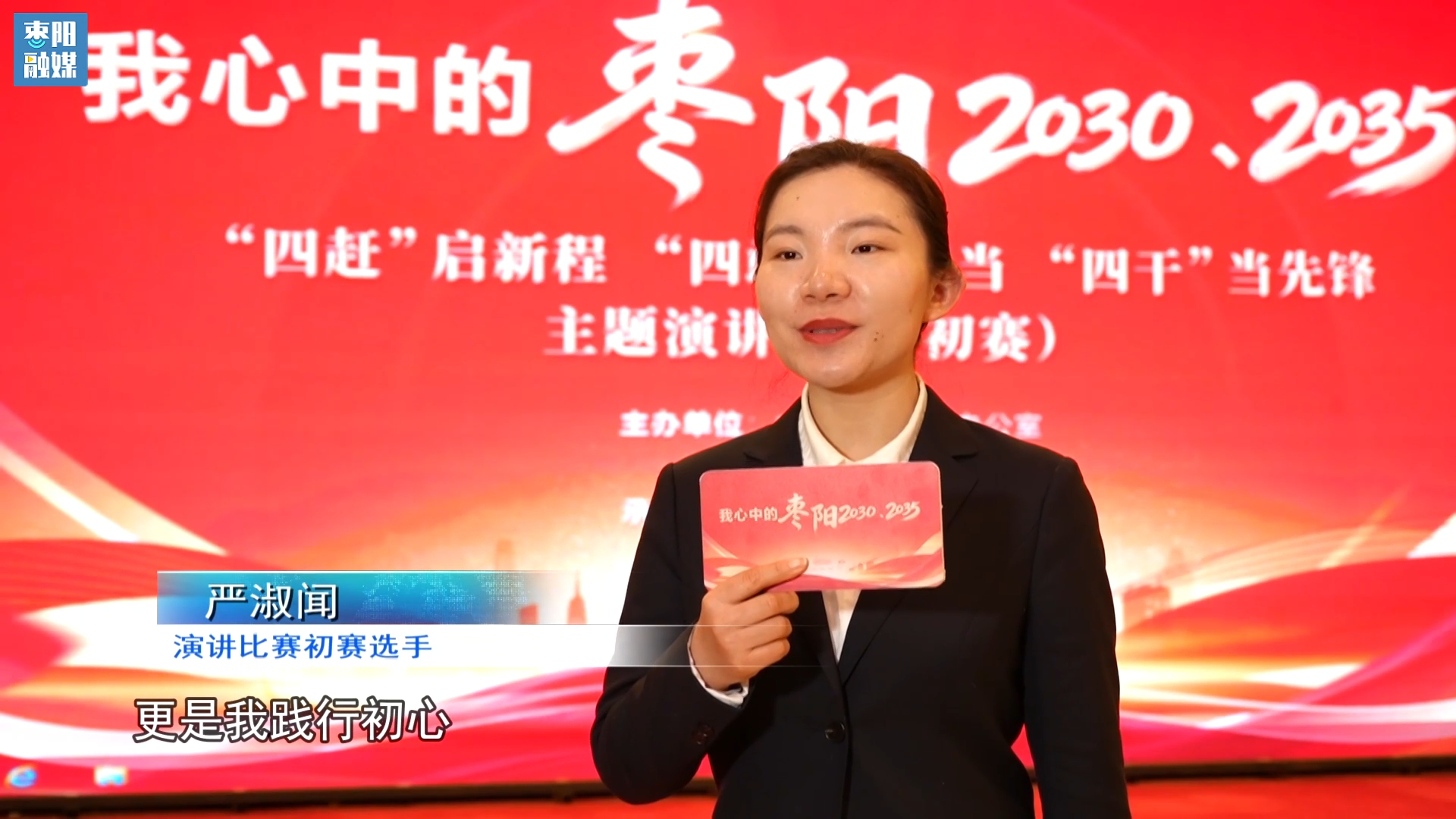 演讲比赛初赛选手卢星如:作为一名乡镇干部,我心中的2030、2035年的枣阳,是产业强劲、城乡和美、治理温暖的幸福家园。2030年,“枣阳皇桃”借智能冷链实现价值链升级,新市“风光水储”基地注入绿色动能;2035年,“四好农村路”串起文旅明珠,公共服务云端共享,全域皆是“无废城市”生态样板。新市镇的冷链项目、生态治理实践,正是枣阳发展的生动缩影。我们基层干部就是铆在土地里的“螺丝钉”,用实干把枣阳的未来蓝图变为美好现实。