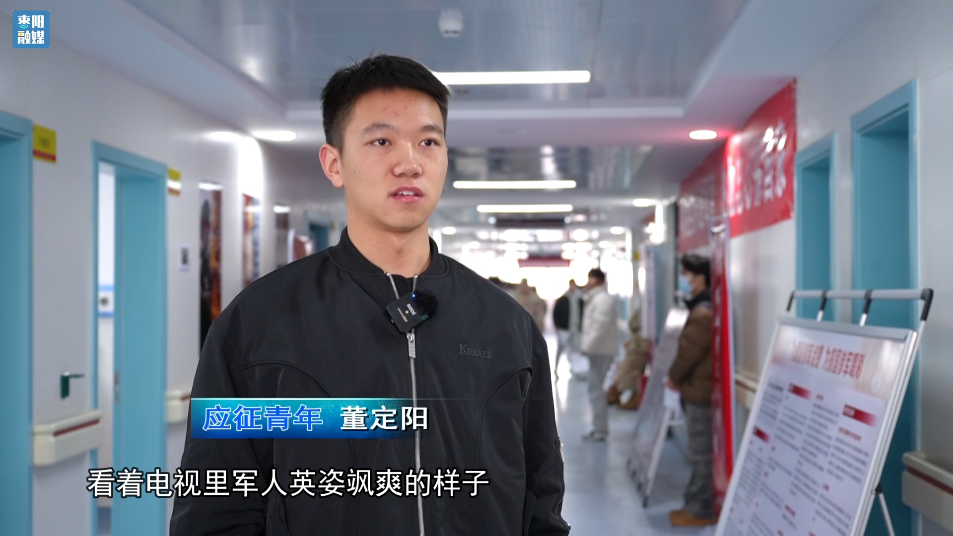 应征青年董定阳:看着电视里军人英姿飒爽的样子,我特别向往。现在国家需要我们,我也特别希望能穿上军装,去部队这个“大熔炉”里锻炼自己,保家卫国,为家乡争光。