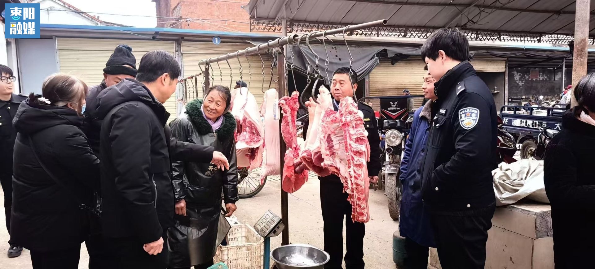 2月3日,新市镇组织镇畜牧站、派出所、市场监管所联合组成打击私屠滥宰工作专班,在新市集镇农贸市场开展规范畜禽屠宰秩序集中宣传活动,全力保障春节前夕肉品市场安全。
