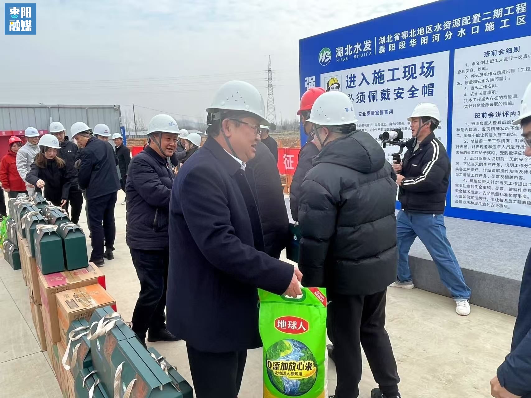 2月3日,省总工会慰问组一行来到鄂北水资源配置二期工程枣阳段施工现场,看望慰问严寒中坚守岗位的一线建设者,并就项目推进情况进行调研。