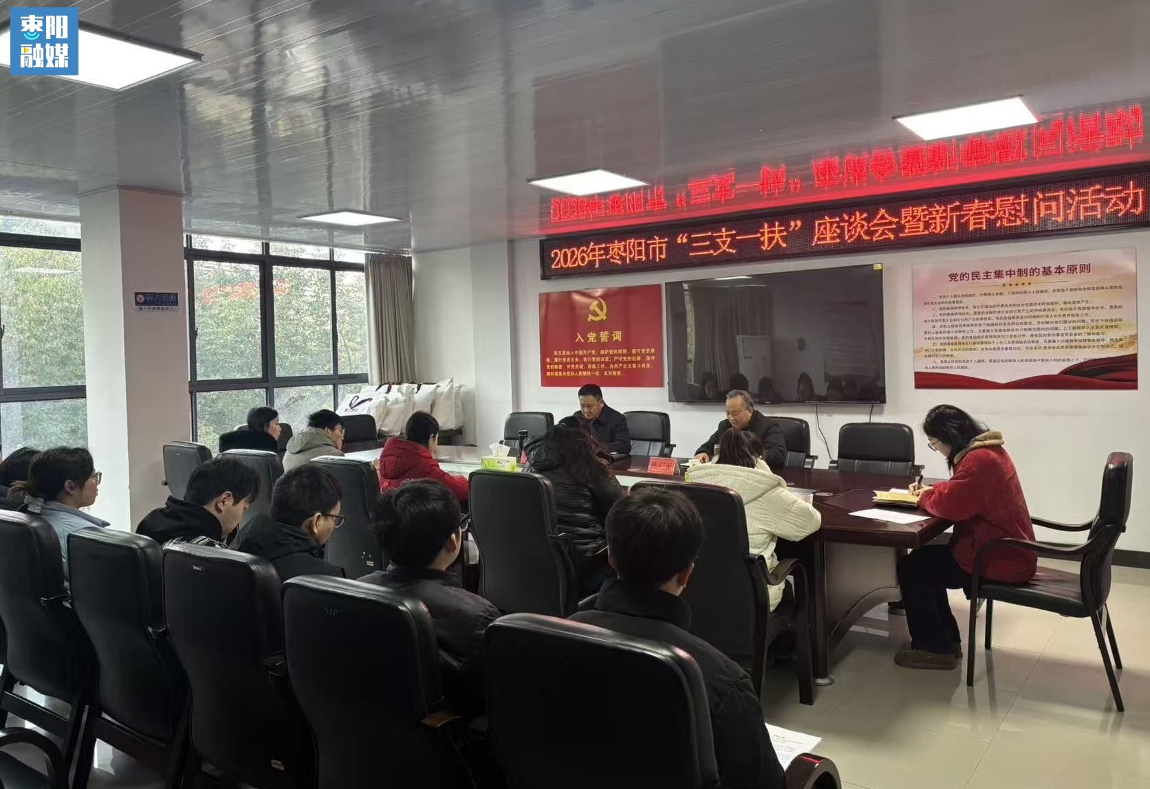 2月4日,枣阳市人社局开展“三支一扶”人员座谈会暨新春慰问活动。枣阳市人社局相关负责人、2024届全体在岗“三支一扶”人员参加活动。