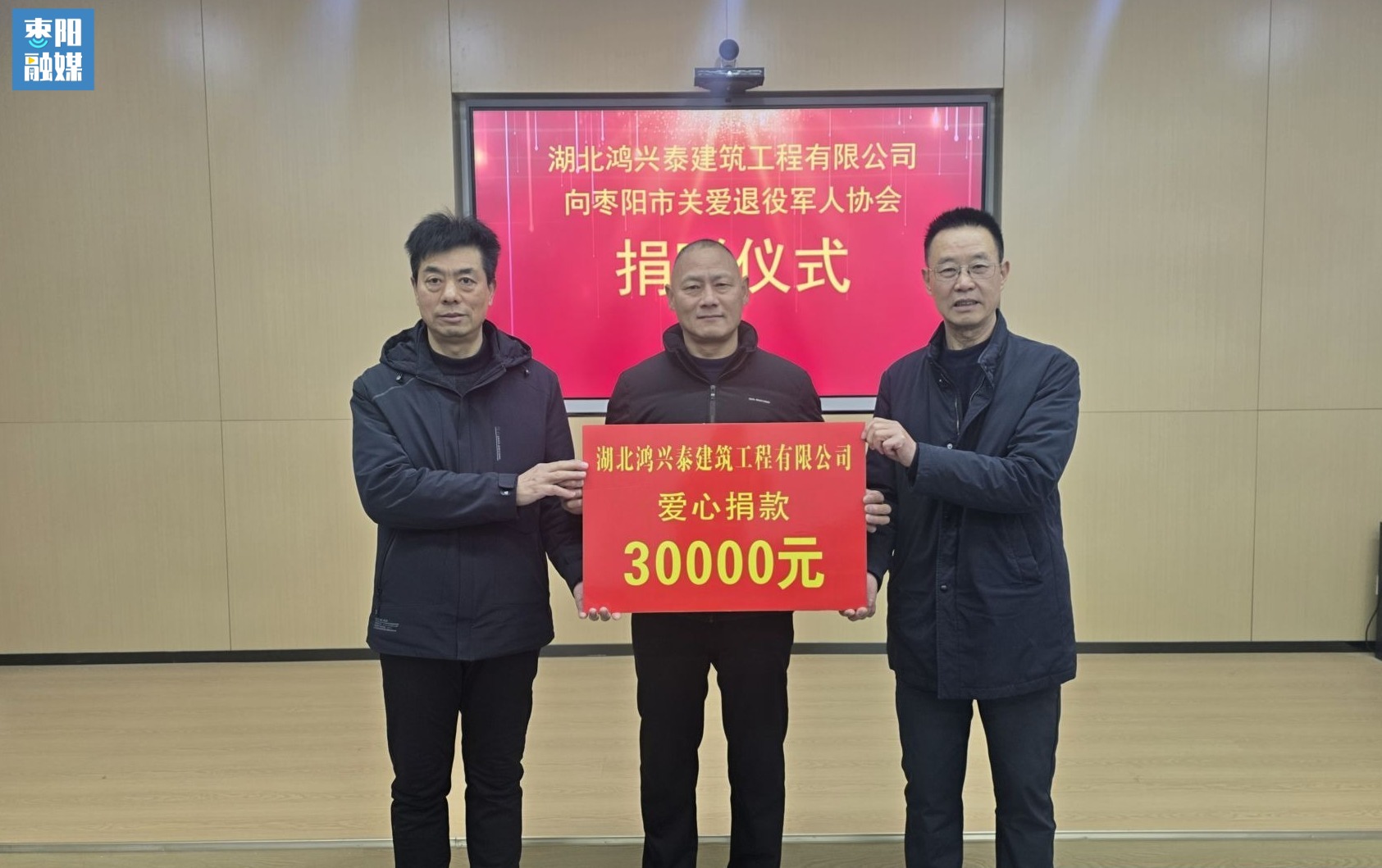 2月4日,湖北鸿兴泰建筑工程有限公司向枣阳市关爱退役军人协会捐赠3万元爱心善款,为关爱退役军人工作注入温暖力量。