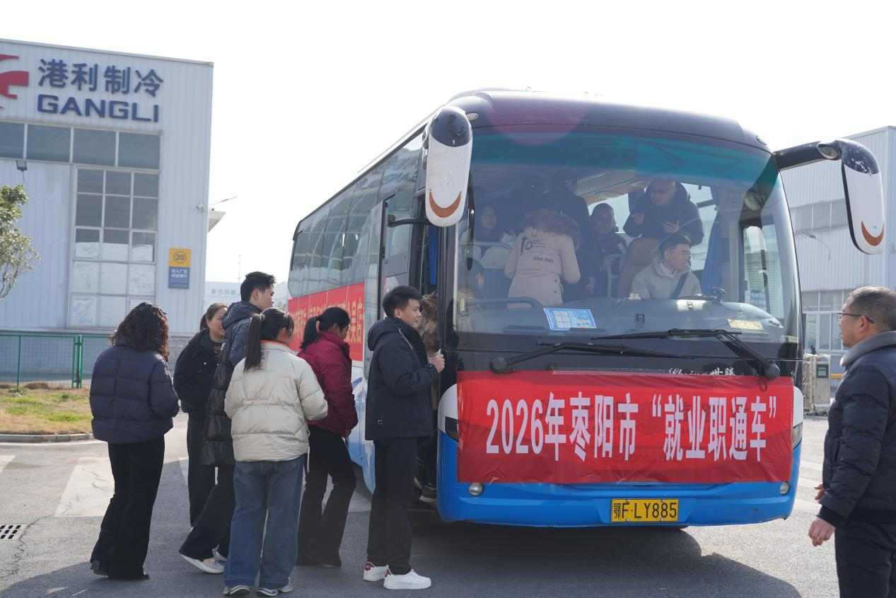 不只是火车站。在汉城景区、在汇聚广场、在乡镇集市,就业信息像年画一样,贴进了枣阳人的春节生活里。同时,就业职通车也持续发车。2月13日(腊月二十六),两辆就业职通车载着80余名返乡人员,开进湖北港利制冷、立晋钢铁等重点企业。这不是走马观花的参观,而是“沉浸式选岗”,走进车间看环境、和老员工聊收入、现场体验岗位。