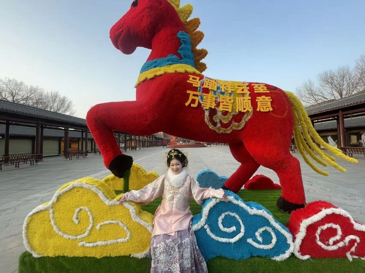 大年初一,汉城景区人头攒动、喜气盈门,再现新春文旅火热盛况。游人扶老携幼、结伴畅游,青石板路上笑语不断;汉服同袍衣袂翩翩,与汉代建筑相映成趣,随手一拍便是古风大片。景区精心打造“马踏祥云至”主题打卡装置,将古风韵味与马年吉祥元素巧妙融合,更有祈福墙供游客书写心愿,祈愿马到成功、万事顺遂,满满新春仪式感。