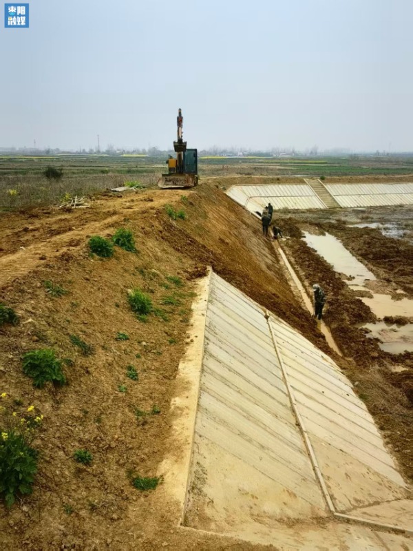 近日,南城街道中陈岗村八组86亩精养鱼塘护坡工程启动,工作人员正忙着铺设护坡砖、加固塘堤。昔日的“沉睡资源”,正一步步变成村集体增收的“金饭碗”。