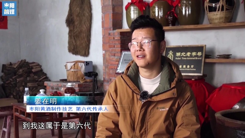 枣阳黄酒制作技艺第六代传承人 姜在明:到我这儿属于是第六代,我心里面总想着,就是说不能把它断了,所以说我也是有一点情怀在里面的。想通过我在武汉学到的这样的一个,比如说拍摄短视频,包括拍视频,通过我们年轻人的这样的一个思路,去跟非遗、黄酒相结合,让更多网友知道。