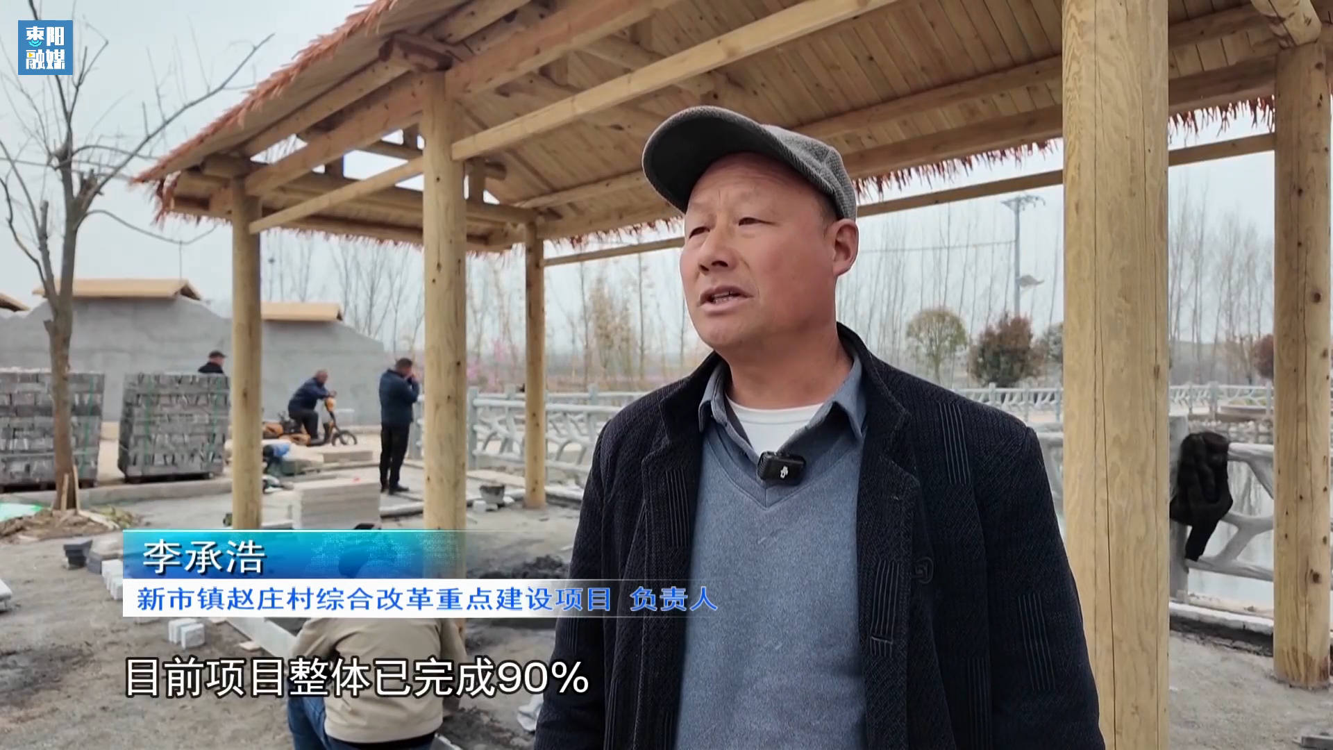 新市镇赵庄村综合改革重点建设项目负责人李承浩:目前项目整体完成90%,文化墙修建已进入收尾阶段,村广场建设已完工,污水管网、道路硬化、围墙改造等核心项目全部完成,下一步将进行道路刷黑工作,确保按时高质量交付。