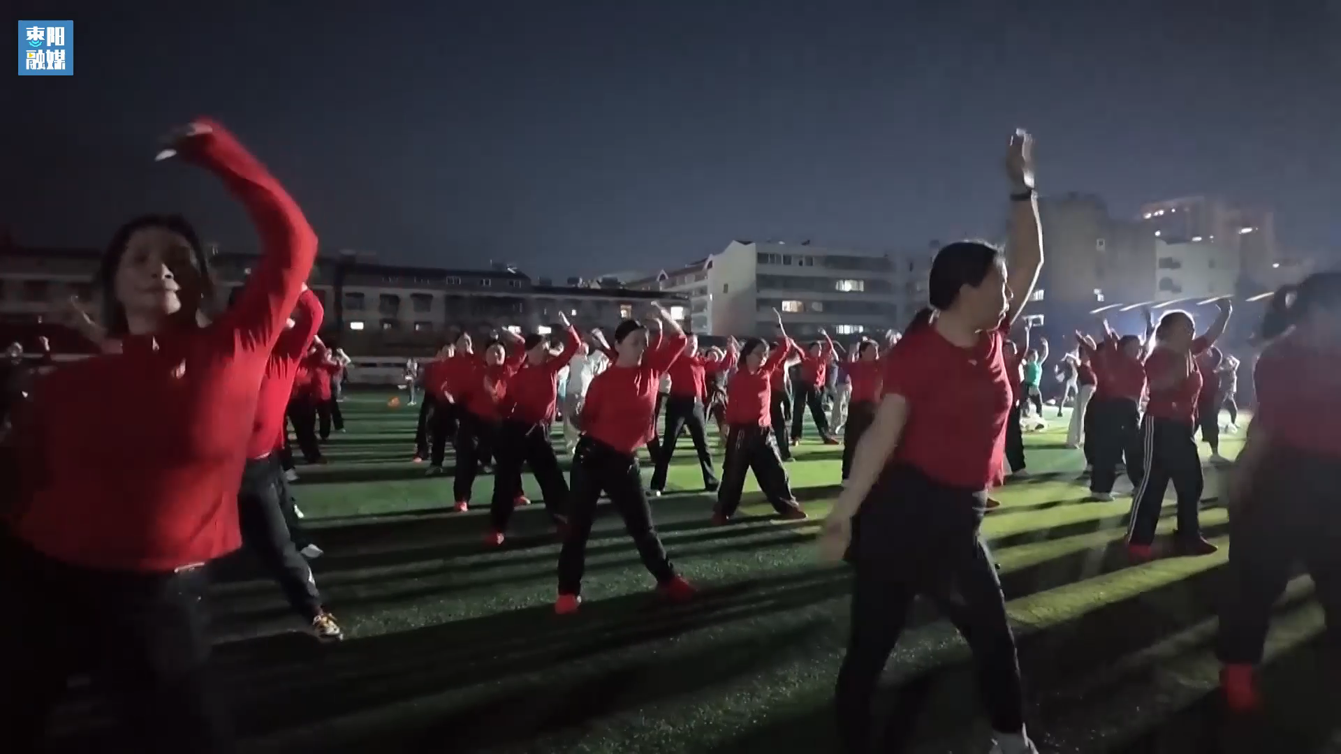 在市文化宫旁的体育场上,动感强劲的音乐瞬间入耳,有氧燃脂操课堂正火热进行。教练史文俊站在队伍前方领操,带领着下班赶来的职工们踏乐起舞,抬手、踢腿、跳跃,每一个动作都整齐有力,大家在酣畅淋漓的律动中卸下一天的工作疲惫,现场气氛热烈又欢快。