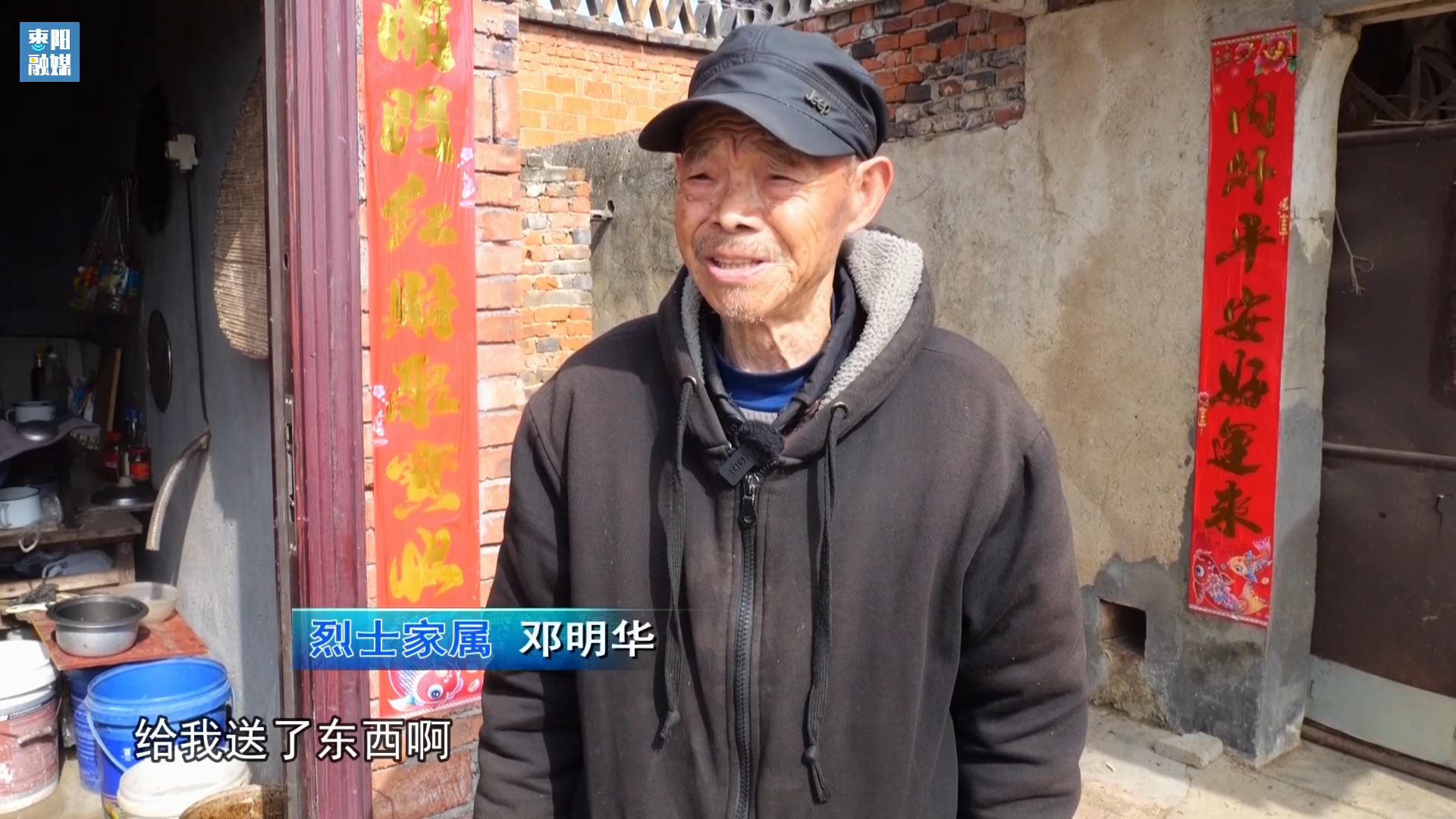 烈士家属邓明华:经常来看我,给我送了东西啊,送了生活物资慰问品,我心里感到很暖和。