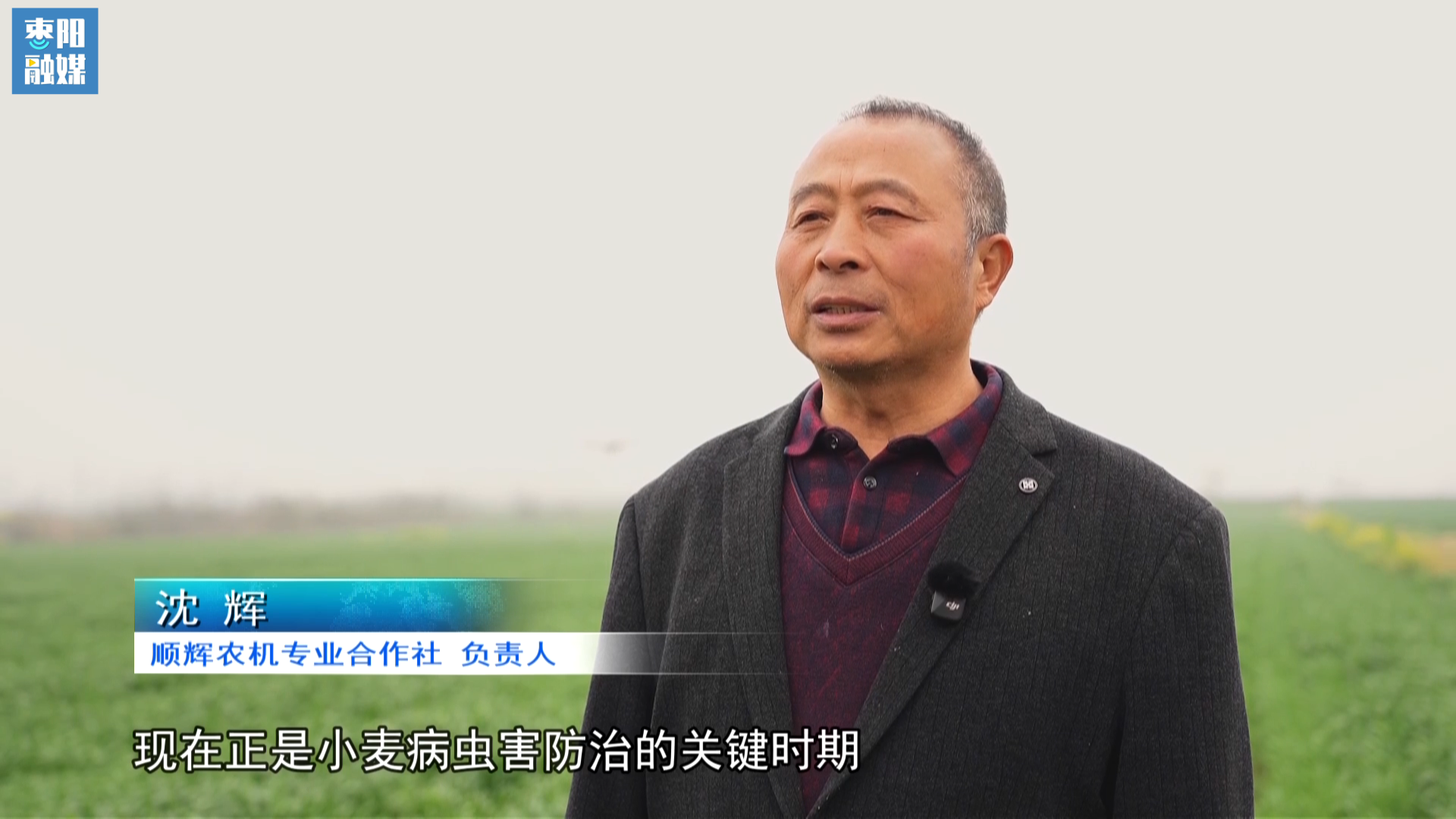 顺辉农机专业合作社负责人沈辉:现在正是小麦病虫害防治的关键时期。我们合作社今年又买了两台最新款的无人机投入春管,确保又好又快地完成病虫害防治。