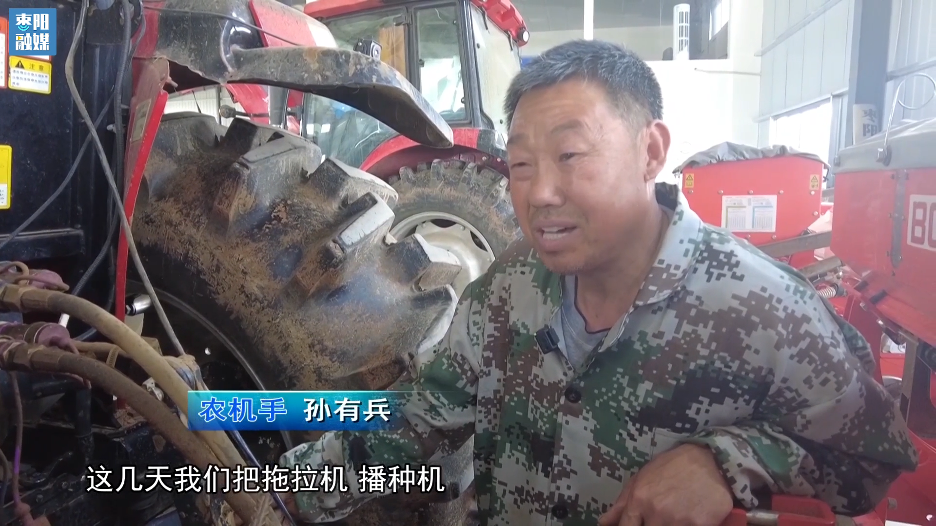 农机手孙有兵:这几天我把拖拉机、播种机开到合作社来保养,确保用的时候不出问题,不耽误时间。