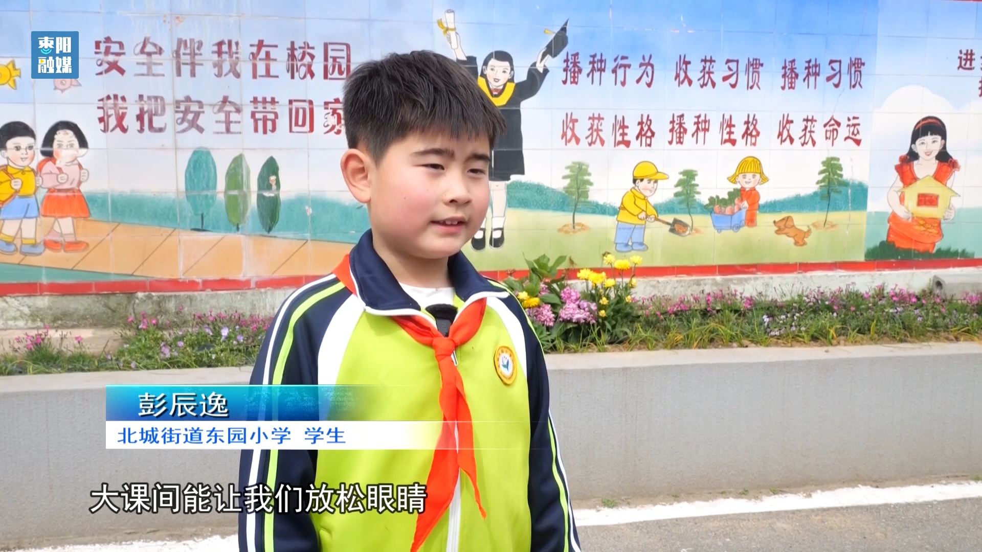 北城街道东园小学学生彭辰逸:大课间能让我们放松眼睛、活动身体,上课的时候也更有精神了。