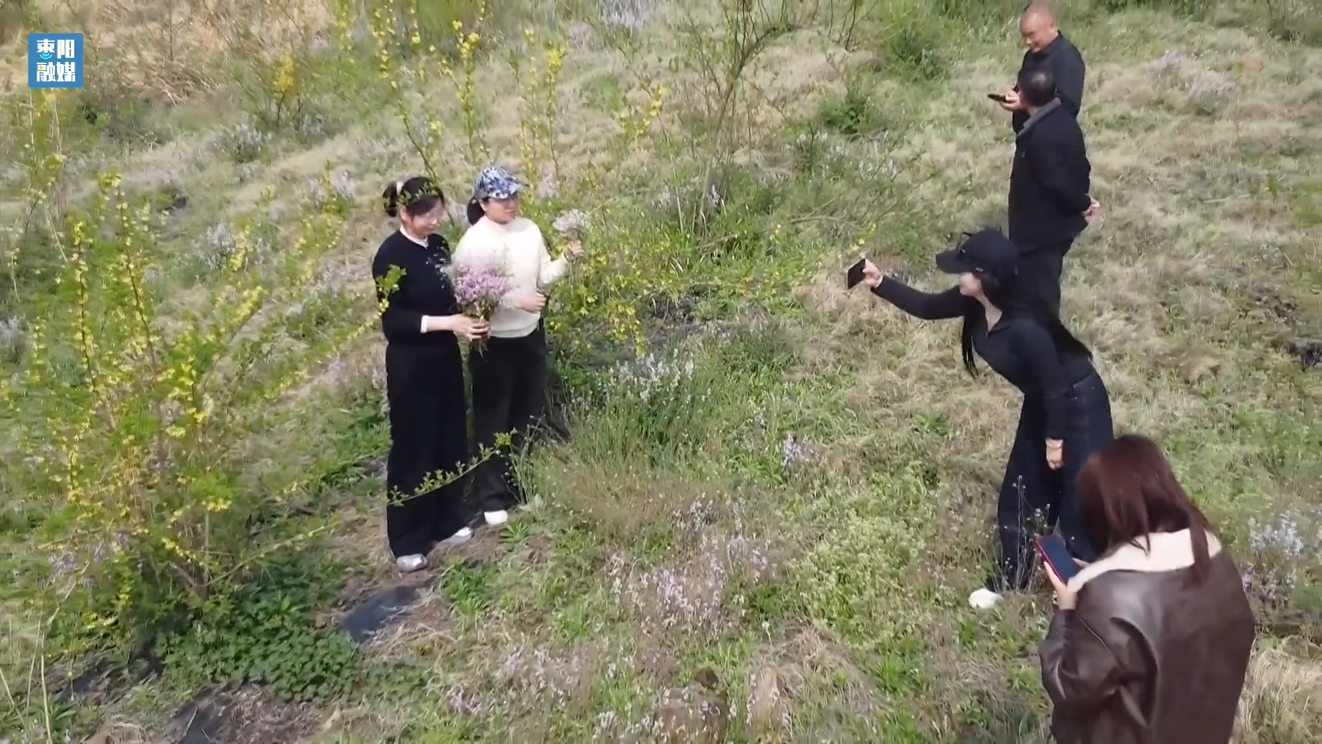 春日时节,榆树村的山坡上春意盎然,1100亩连翘花竞相绽放,金黄花穗与点缀其间的紫色野花交相辉映,宛如一幅灵动的油画。这是当地规模化种植连翘以来的首个盛花期,独特的花海景致吸引了众多游客前来观赏。