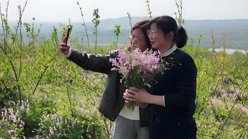 春意盎然的榆树村山坡上,1100亩连翘花竞相绽放,金黄花穗与点缀其间的紫色野花形成灵动油画。作为规模化种植连翘后的首个盛花期,这片独特花海已吸引大批游客慕名前来。游客任女士表示:"专门来看连翘花,之前没见过,今天一看确实漂亮,比桃花更有特色。"