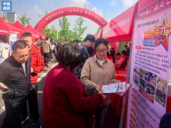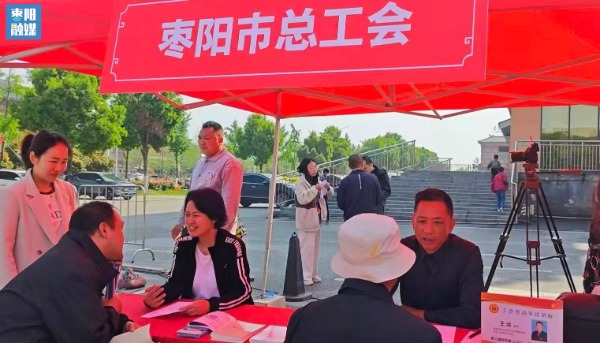 4月12日上午,枣阳市总工会在大汉茂停车场举办2026年“工会助就业”春季专场招聘会。