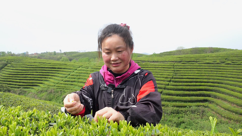 在生态茶园里,五十余名茶农穿梭于茶垄间。66岁的吴洪平首次参与采茶,每天工作两三个小时能挣几十元“菜钱”,下午还能回家带孩子;拥有十多年经验的兰青霞则动作麻利,清明后每天能采十来斤茶叶,预计整个采茶季可增收三四千元。茶场优先吸纳本地村民就近务工,实现“挣钱顾家两不误”,春茶采摘已成为村民增收的重要渠道。