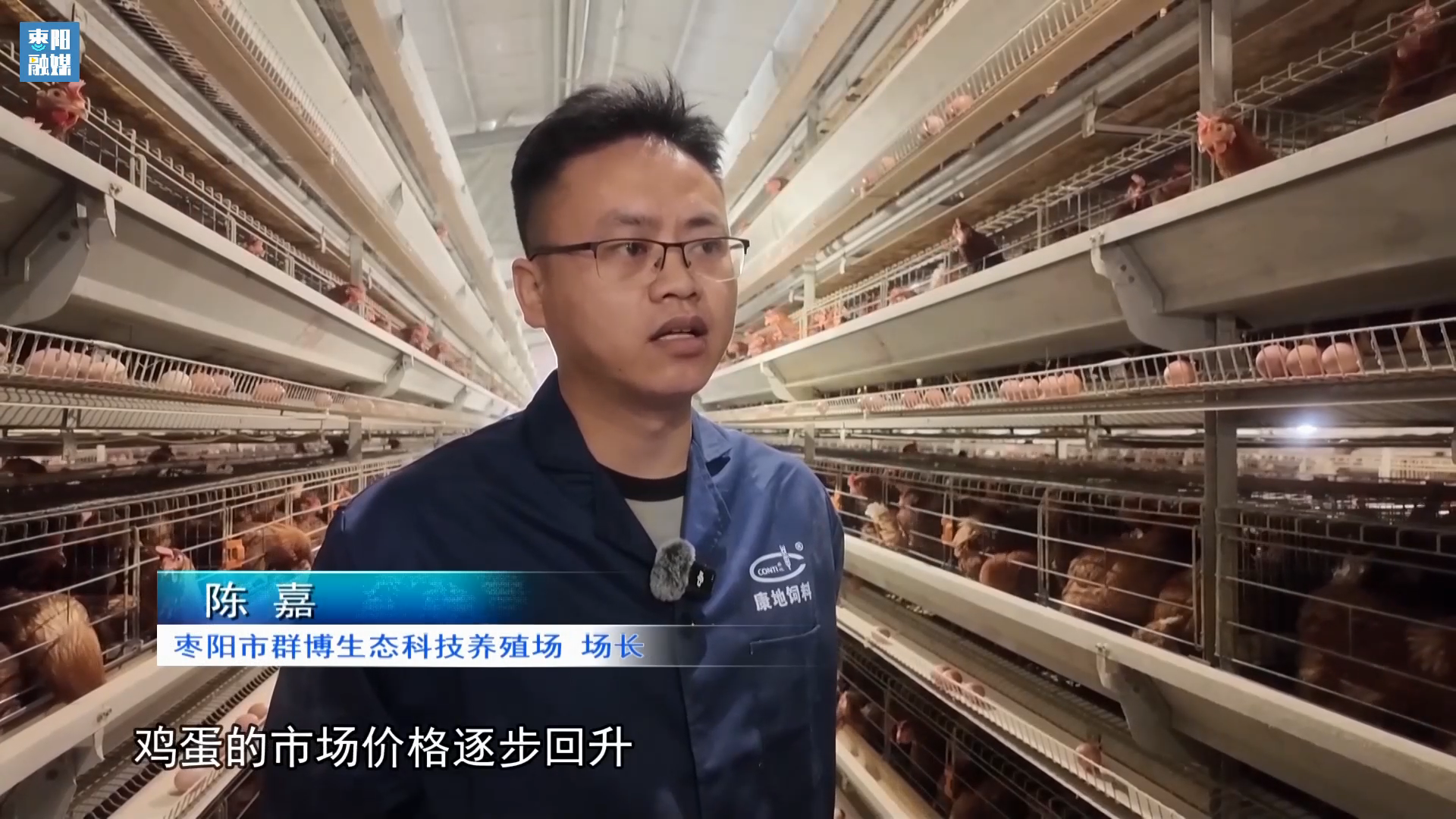 枣阳市群博生态科技养殖场场长陈嘉:接下来我们企业将合理控制蛋鸡补栏节奏,优化养殖种群结构,进一步提升规模化养殖,提升抗风险能力,保障鸡蛋持续稳定供应。