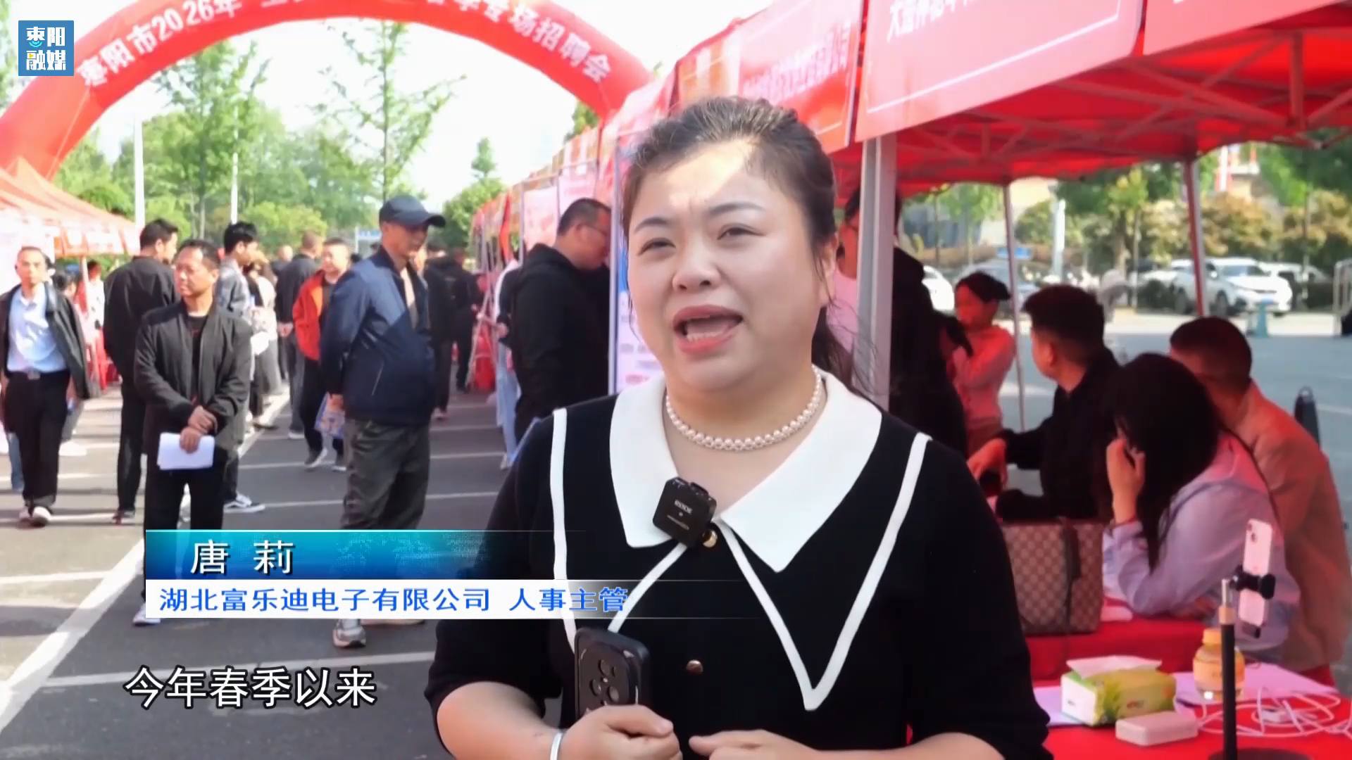 湖北富乐迪电子有限公司人事主管唐莉:今年春季以来,公司的订单爆满,非常急缺工人,这次招聘会是场“及时雨”,为我们企业创造了一个招聘的平台。
