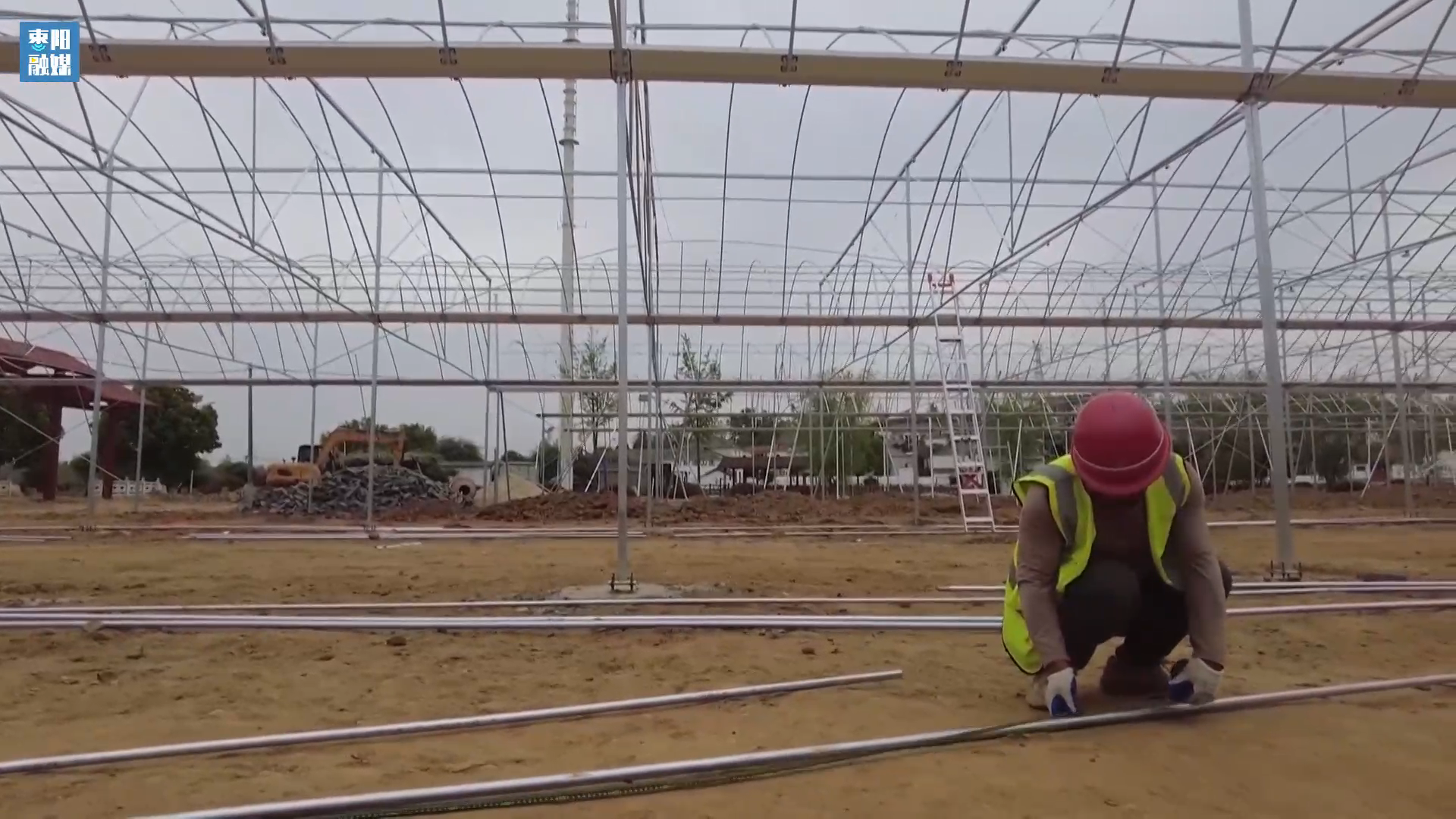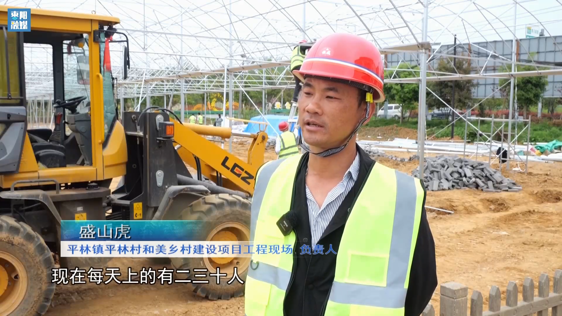 平林镇平林村和美乡村建设项目工程现场负责人盛山虎:现在每天上的有二三十人,我们赶工期,我们现在做这个大棚框架,预计在五月左右整体完工。