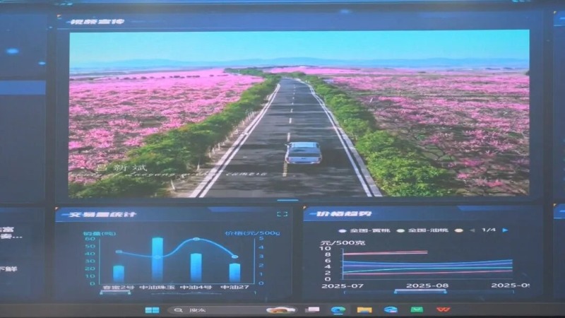 走进枣南桃产业大数据中心,数字家底、数字种田、价格趋势动态比对图等信息实时更新。工作人员通过平台监测各桃园的土壤墒情、病虫害发生及果实生长情况。该中心整合气象、土壤、市场等多维度数据,不仅为桃农提供精准种植指导,还能分析市场需求、预测价格走向,助力桃农增产增收。