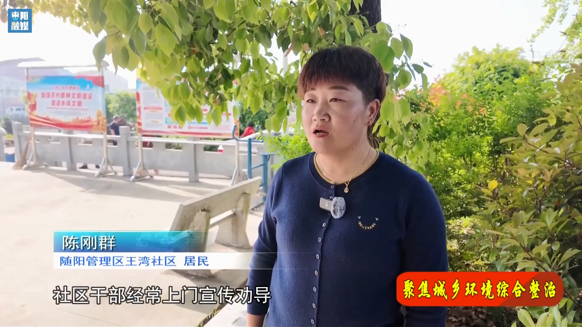 随阳管理区王湾社区居民陈刚群:社区干部经常上门宣传劝导,我们也被带动起来,主动清扫道路公共区域。现在社区环境整洁清爽,居住起来舒心多了。