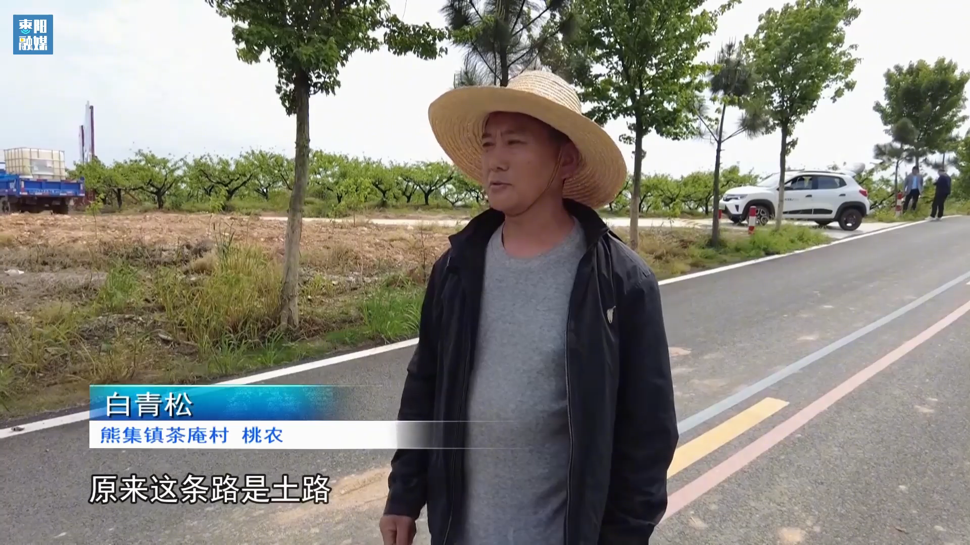 熊集镇茶庵村桃农白青松:“以前这条路是土路,一下雨桃子运不出去,只能烂在地里。现在柏油路修到家门口,货车直接开到地头”。