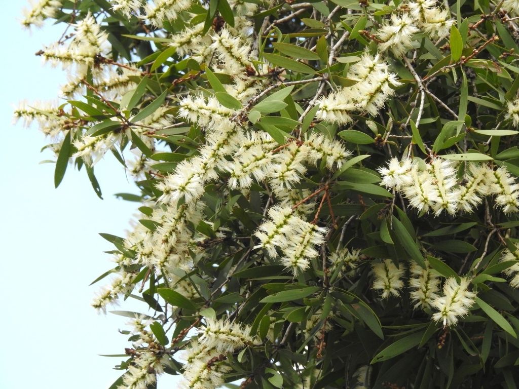 沧桑拙朴的白千层,花朵却毛茸茸的,非常可爱,犹如白色的奶瓶刷,摇摇晃晃悬挂枝头。从叶子、嫩芽和种子中提炼出的化合物,有很高的药用价值,同时也是万金油、白花油的重要成分。