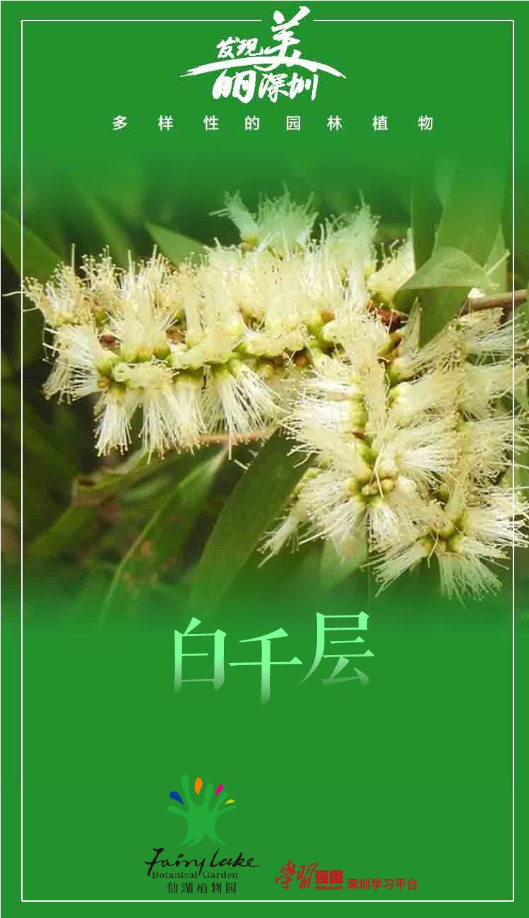 沧桑拙朴的白千层,花朵却毛茸茸的,非常可爱,犹如白色的奶瓶刷,摇摇晃晃悬挂枝头。(来源:广东省深圳市中科院仙湖植物园)